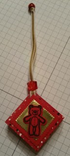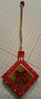 Enfin, en ce qui concerne le grelot qui va permettre d\’arrêter la perle, je vous conseille une breloque car elle sera tout aussi efficace et bien plus facile à enfiler sur le ruban. Nous avons les décorations \ »Breloques de Noël\ », réf. 141997 au prix de 9,75€ les 24 ornements, page 27 du catalogue Automne/Hiver 2016, ou les mini pommes de pin, réf. 141990 à 9,25€ les 24 pièces, page 20 du catalogue Automne/Hiver, qui conviendraient parfaitement pour ce projet.