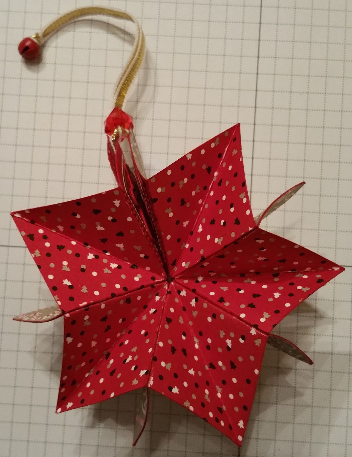 Comme promis à toutes les scrappeuses lors du On Stage, j\’ai le plaisir de mettre en ligne le Swap que j\’ai réalisé pour l\’occasion et qui peut facilement s\’offrir pour les fêtes de Noël, comme petit présent d\’amitié. Je l\’ai baptisé \ »étoile pliante\ ».