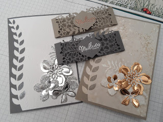 Comme je vous l\’avais indiqué, je poursuis avec ce projet la découverte du catalogue Printemps-été 2017 de Stampin Up en présentant à la fois le magnifique papier à motif de la collection Design Amour naissant (réf. 142788) et les poinçons Thinlits \ »En détails\ » (réf. 142751) qui sont assortis au set de tampons \ »Amour fou\ » (réf. 143485 ou 144740 en lot). Avec leurs découpes délicates, ces poinçons sont une source d\’idées qui titillent mon imagination pour la création de projets précieux, subtils et élégants.