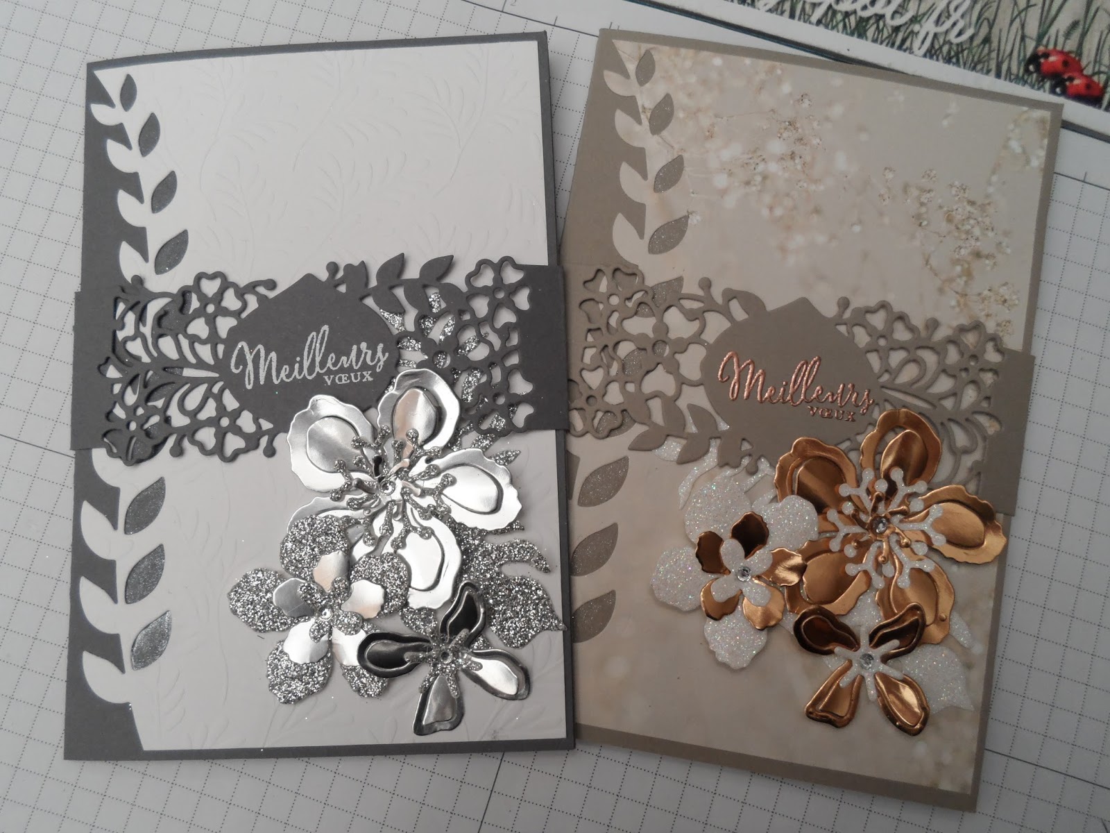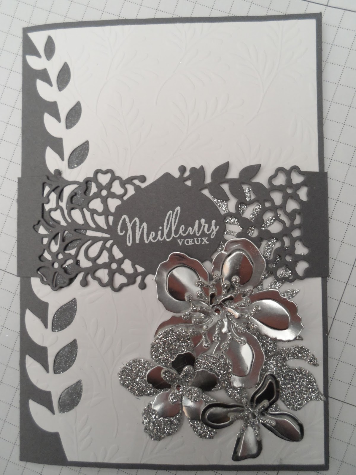 Cette semaine, je vous propose une carte de voeux, rapide à réaliser mais néanmoins raffinée et très jolie,… à mon goût bien sûr.