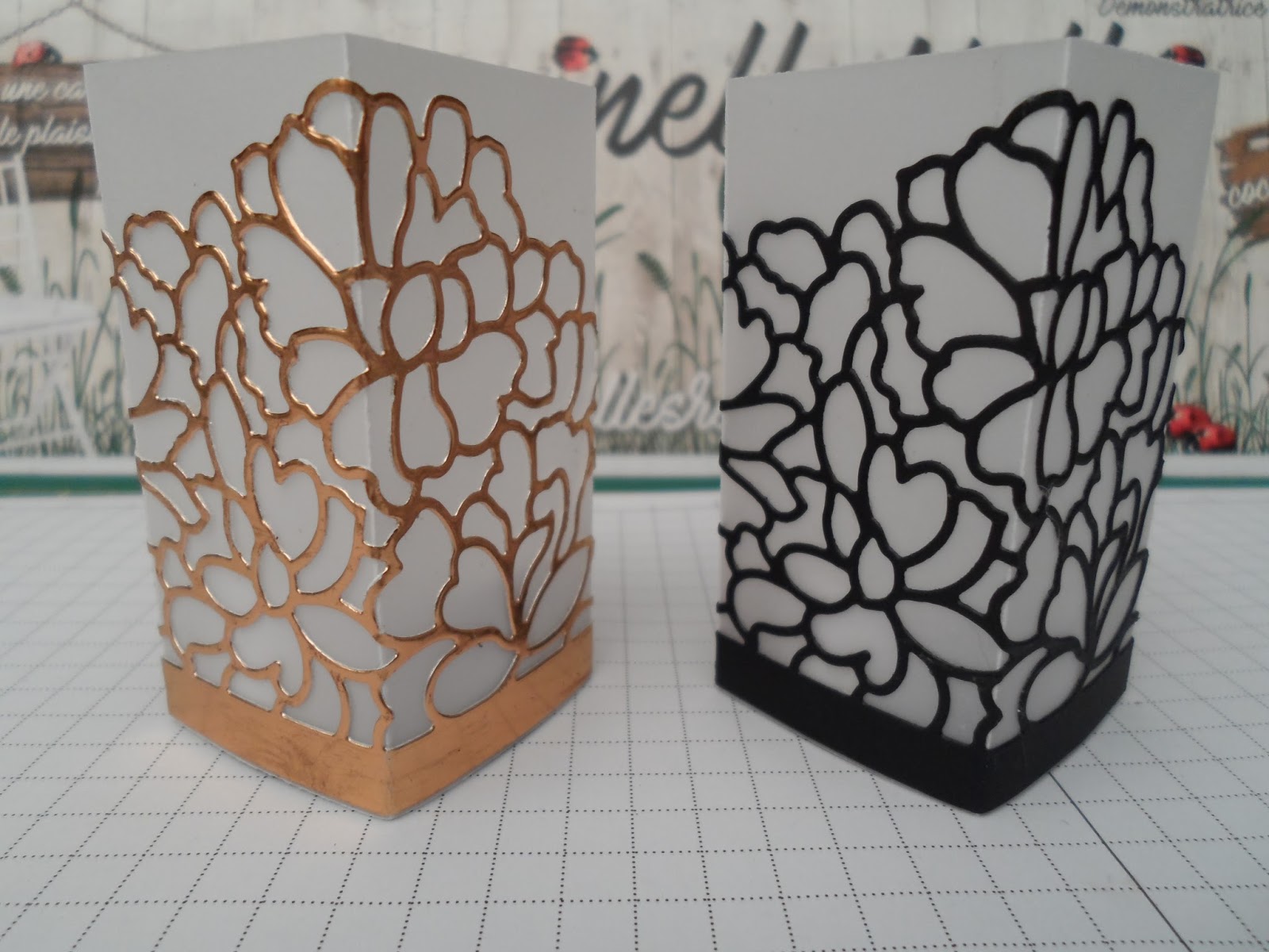 Outre la finesse des découpes, l\’utilisation du papier cartonné Vélin (réf. 106584) donne une opacité au photophore qui suscite l\’illusion du verre sablé.