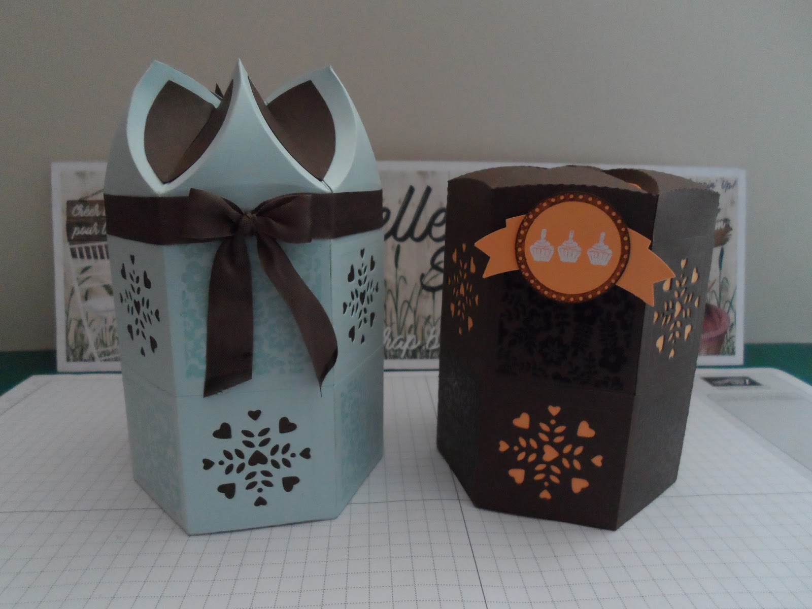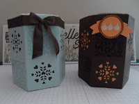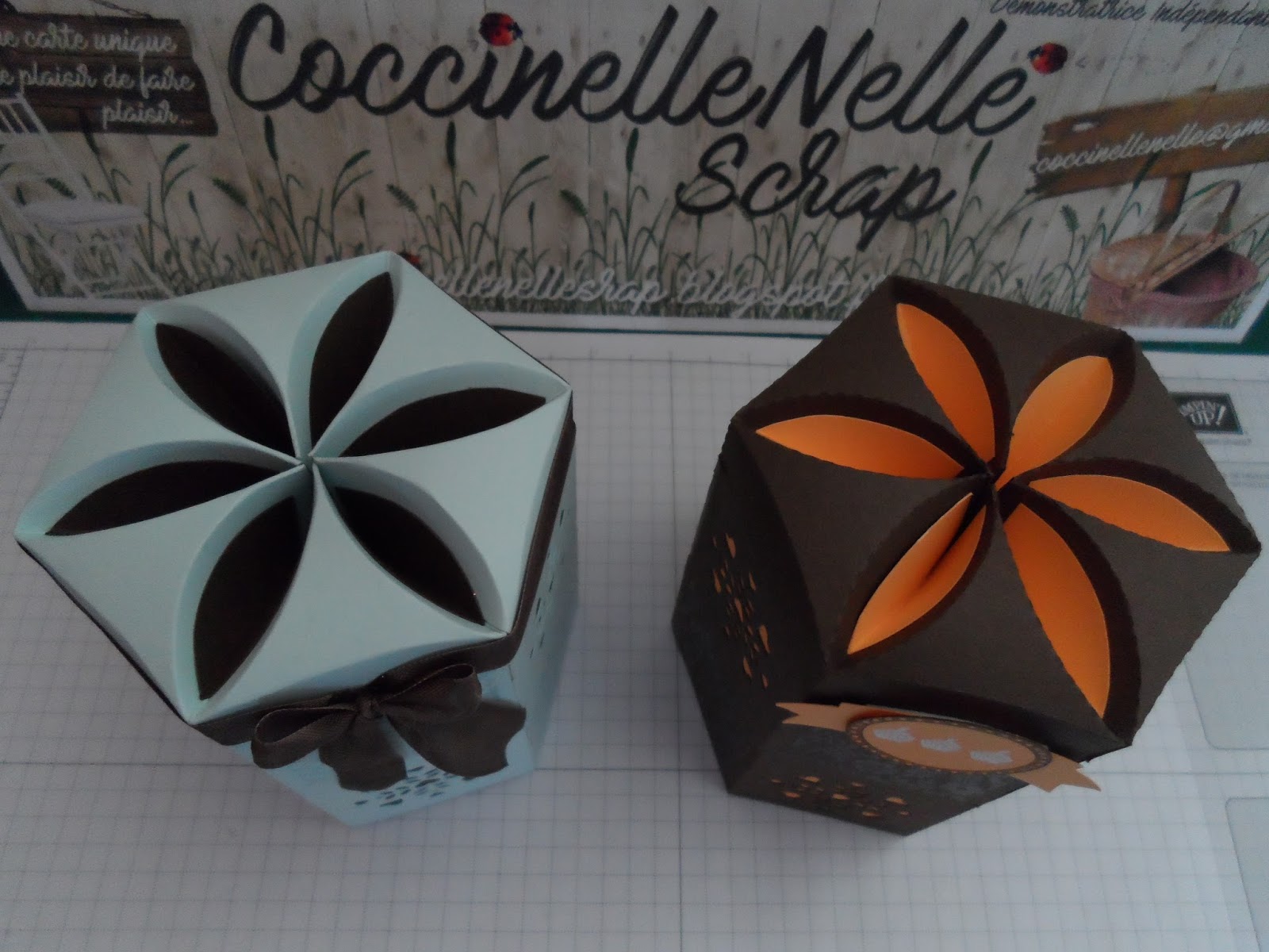 - 1 page 30,5 x 30,5 cm de papier cartonné Doux ciel dans laquelle j\’ai découpé 4 fois le poinçons de la boîte hexagonale du set \ »Jardinière\ » (réf. 142762 ou en lot avec le set de tampons que j\’utilise également : réf. 144744 du catalogue Printemps/été) ;
