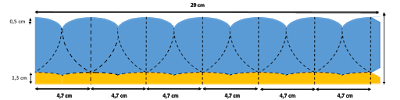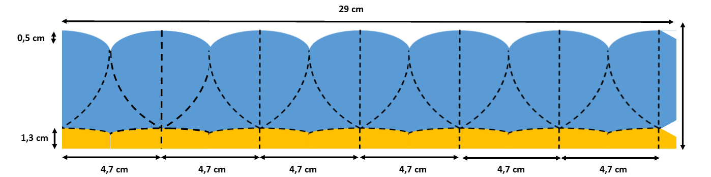 Pour ce projet, vous devrez découper préalablement dans des chutes de papier 3 cercles (ou demi-cercle ou quart de cercle). Un de 9 cm de rayon (ou 18 cm de diamètre), un de 5 cm de rayon (ou 10 cm de diamètre) et le troisième de 4 cm de rayon (ou 8 cm de diamètre) qui serviront de guide pour le tracé les arcs de cercle du schéma suivant :