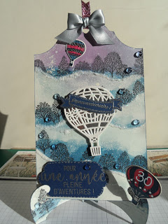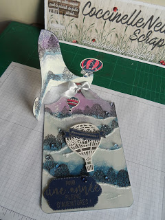 Pour donner une jolie forme à ce gros tag, je vous propose quelques astuces réalisées avec les matrices de découpes \ »Plein d\’étiquettes\ » et \ »Pyramide de cercles\ ».