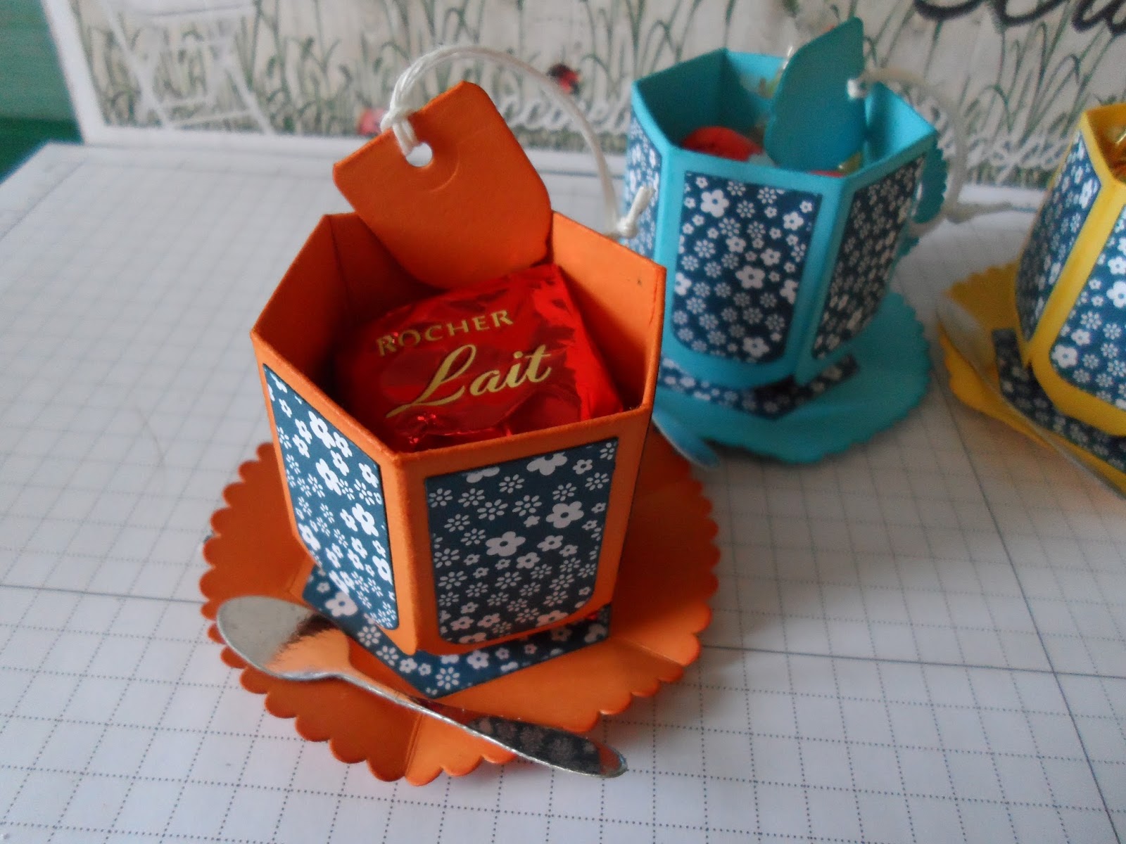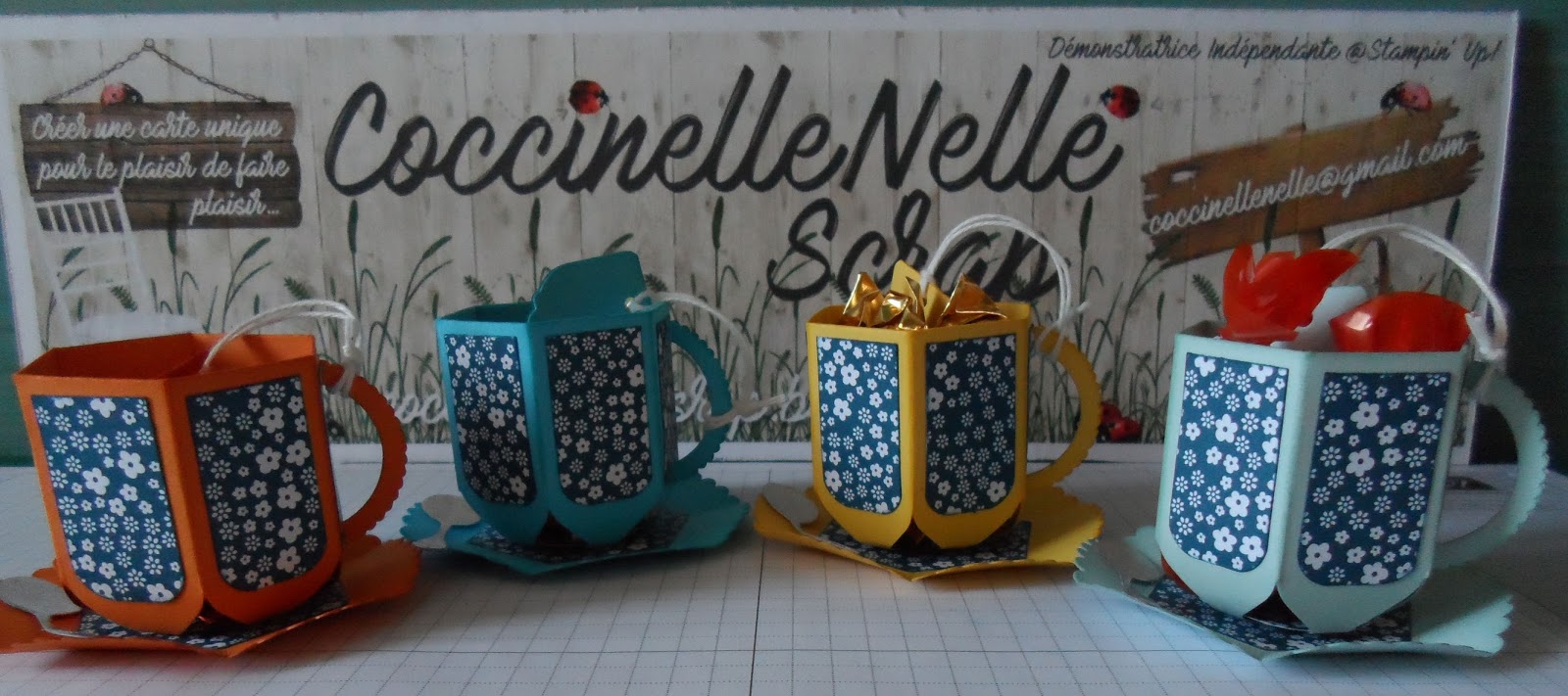 Pour réaliser ce service à café ou à thé, je me suis inspirée du mug de Sophie, ma Marraine Stampin Up, que j\’ai transformé en petite tasse avec une soucoupe.