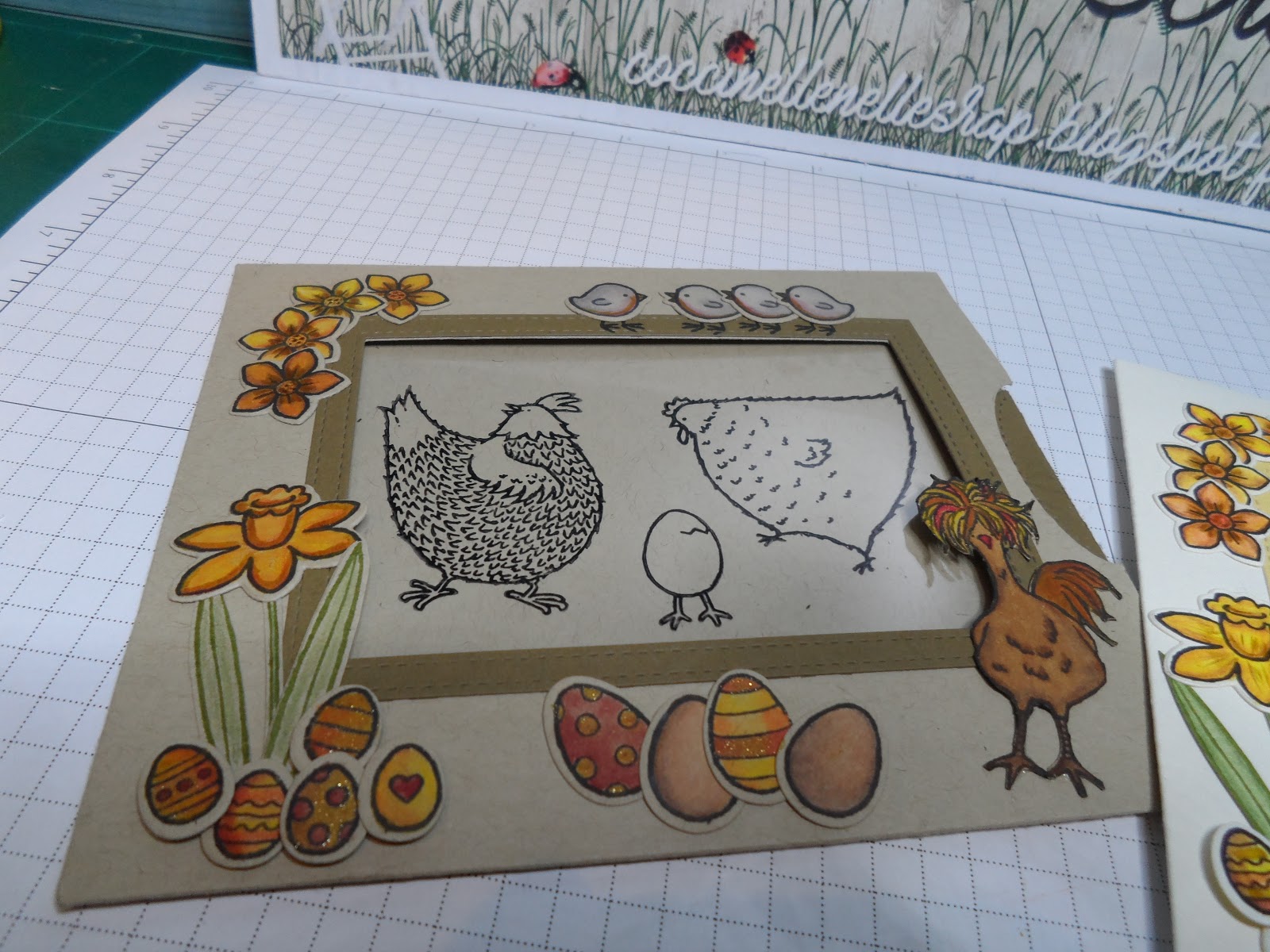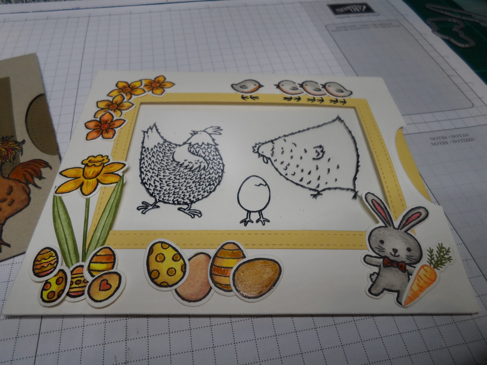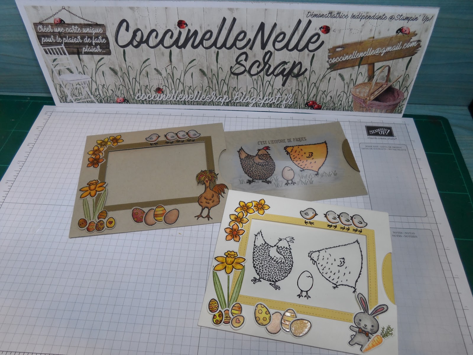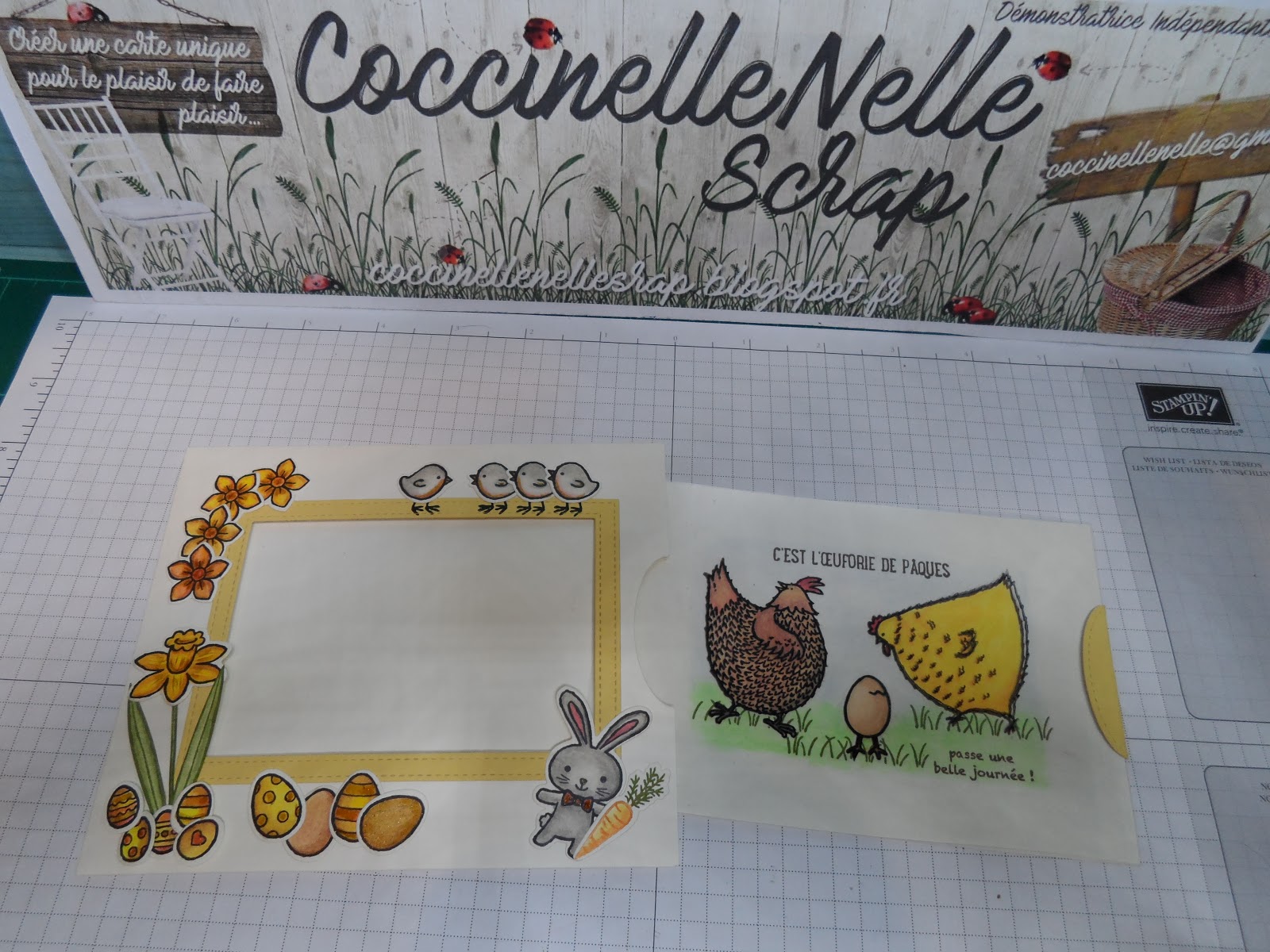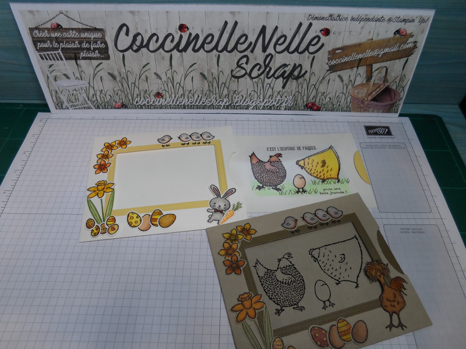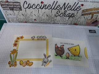- des chutes de papier cartonné \ »Très Vanille\ » pour réaliser les embellissements (oeufs, fleurs, poussin, lapin, coq, etc…)