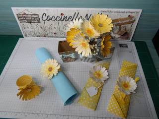 En réalisant, le bouquet de marguerites et son vase, la pochette à couverts et le rond de serviette, vous réunirez tous les ingrédients pour arranger une superbe table champêtre.