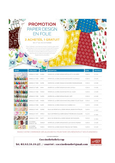 - la seconde porte sur une série de papier design \ »3 achetés, 1 gratuit\ ». Vous choisissez 3 références dans la liste , ci-dessous, (les mêmes ou différentes) plus une référence qui vous sera offerte (ça se fait automatiquement lors de votre commande). Cliquez sur la photo pour télécharger le flyer.