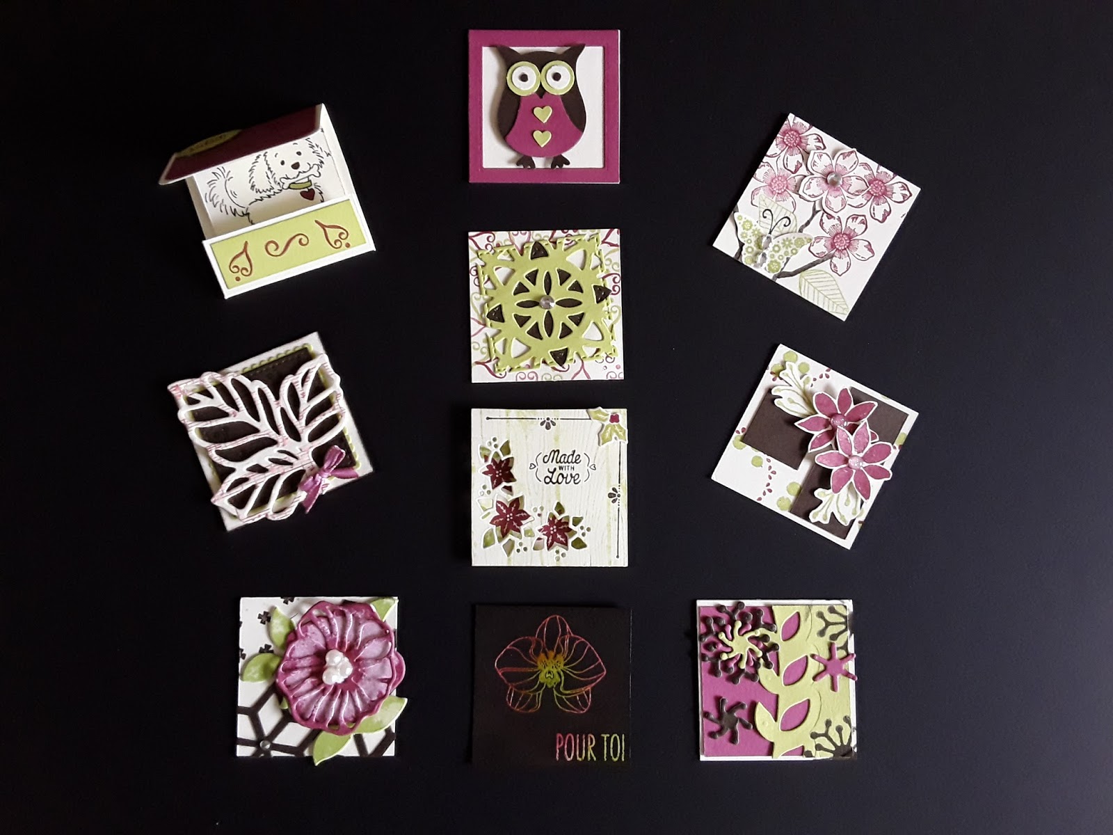Il s\’agissait de créer des Ptits K-Rés de 5 cm de côté aux 3 couleurs choisis par chacune des 11 participantes.