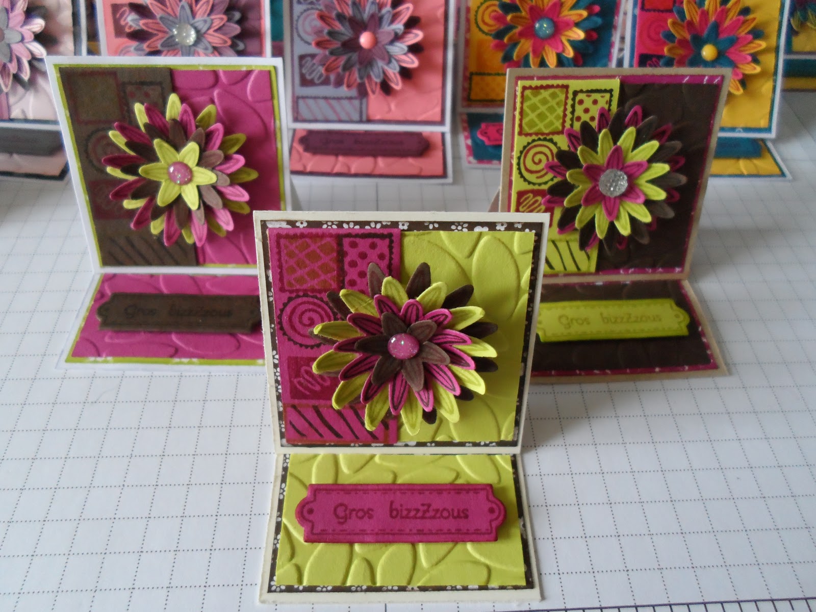 Et pour ma part, voici les 10 ptits K-rés que j\’ai fait sous forme de chevalet, et que j\’ai envoyé à chacune des participantes dans les couleurs qu\’elles avaient choisies. En fait, je les ai fait trois fois avec les mêmes couleurs. Ce qui donne des p\’tits K-rés complétement différents. Alors que c\’est pourtant le même modèle et les mêmes couleurs qui sont employées pour les trois modèles mais placée différemment. Voici le résultat…