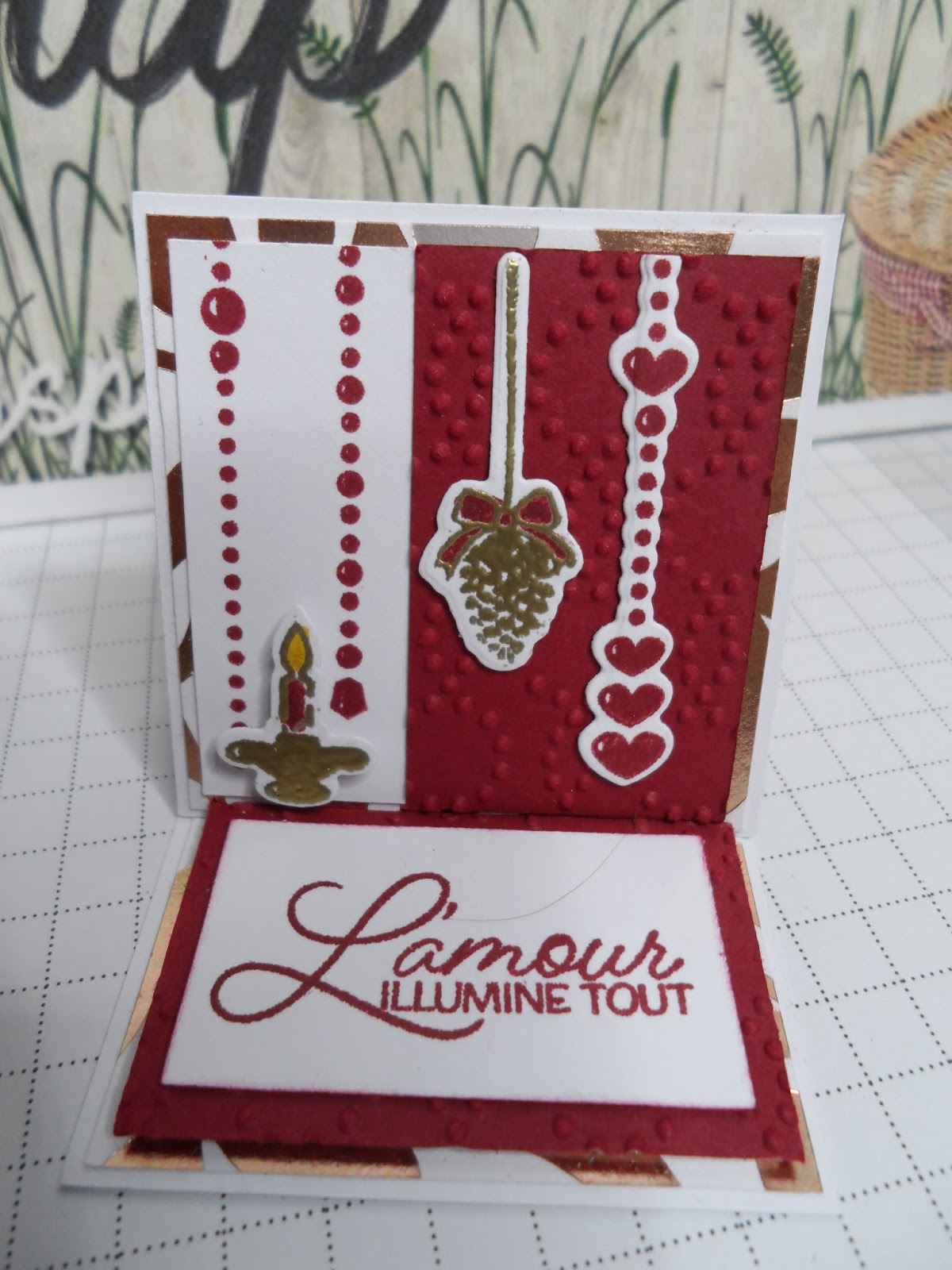 Le projet que je vous présente aujourd\’hui m\’a été inspiré suite au challenge lancé à son équipe par notre Marraine Stampin Up.