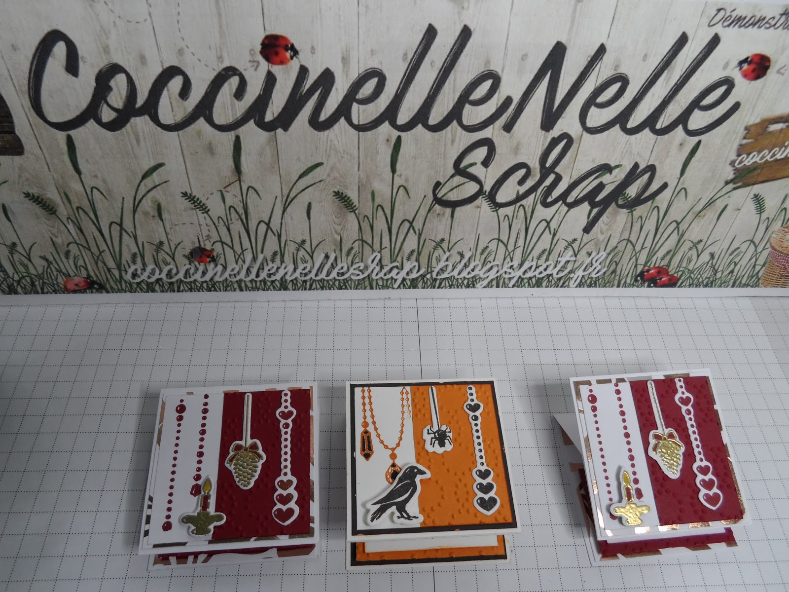 - 2 rectangles de papier cartonné Cerise carmin ou Tarte au potiron (version halloween) de 4,5 x 2,70 cm ;