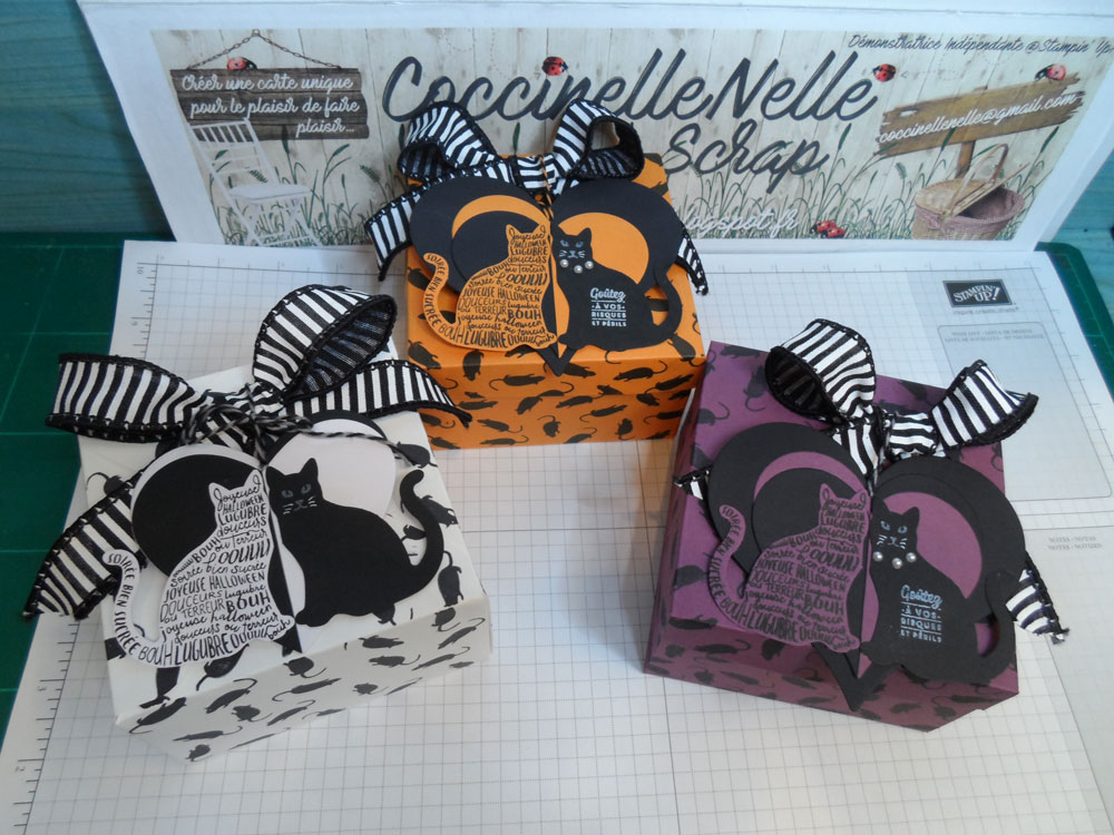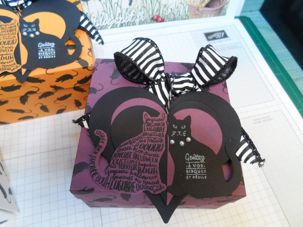 A l\’approche de la fête d\’Halloween, j\’ai décliné cette boîte pour l\’occasion mais rien n\’est jamais figé et en modifiant les tamponnages de souris notamment, il est possible de l\’offrir pour toutes autres raisons.