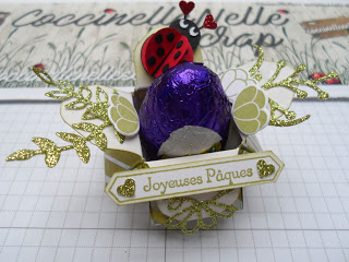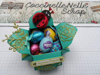Pour décorer votre table de Pâques, je vous propose ces petites boîtes marque-places que j’ai réalisées avec le papier de la série design Printemps métallisé présenté dans la brochure Sale-A-Bration et qu’il est possible de recevoir en cadeau lors d’une commande de 60€ (hors frais de port).