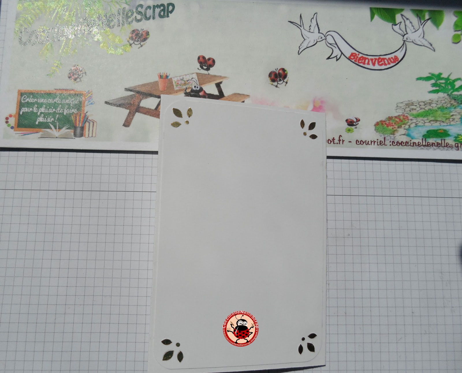 - 2 rectangles de papier cartonné Murmure blanc de 14 x 9,4 cm (papier appliqué l\’un, à l\’avant qui sera ajouré et embossé et l\’autre, à l\’arrière, qui servira pour écrire son message ;