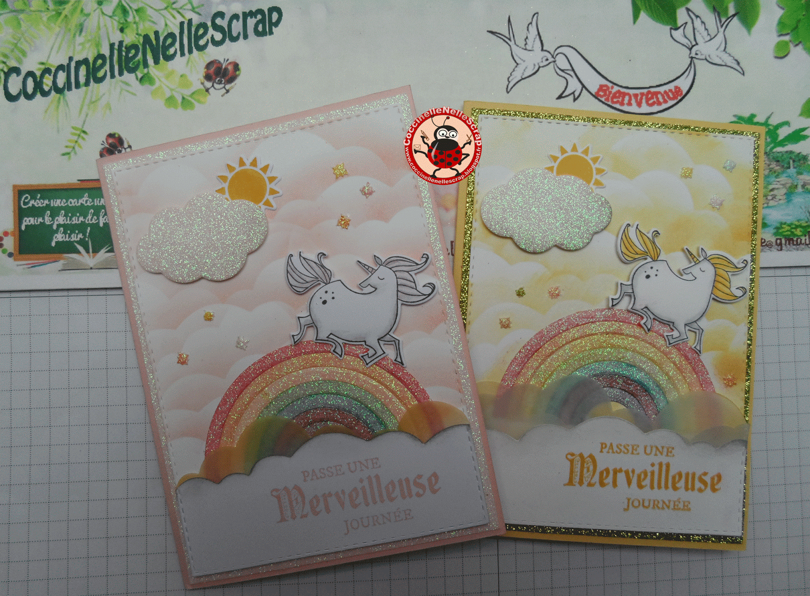 PS : Vous avez les découpes mais pas les papiers à paillettes qui ne sont plus disponibles. Je vous conseille de faire votre carte :