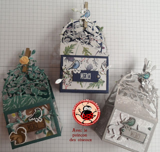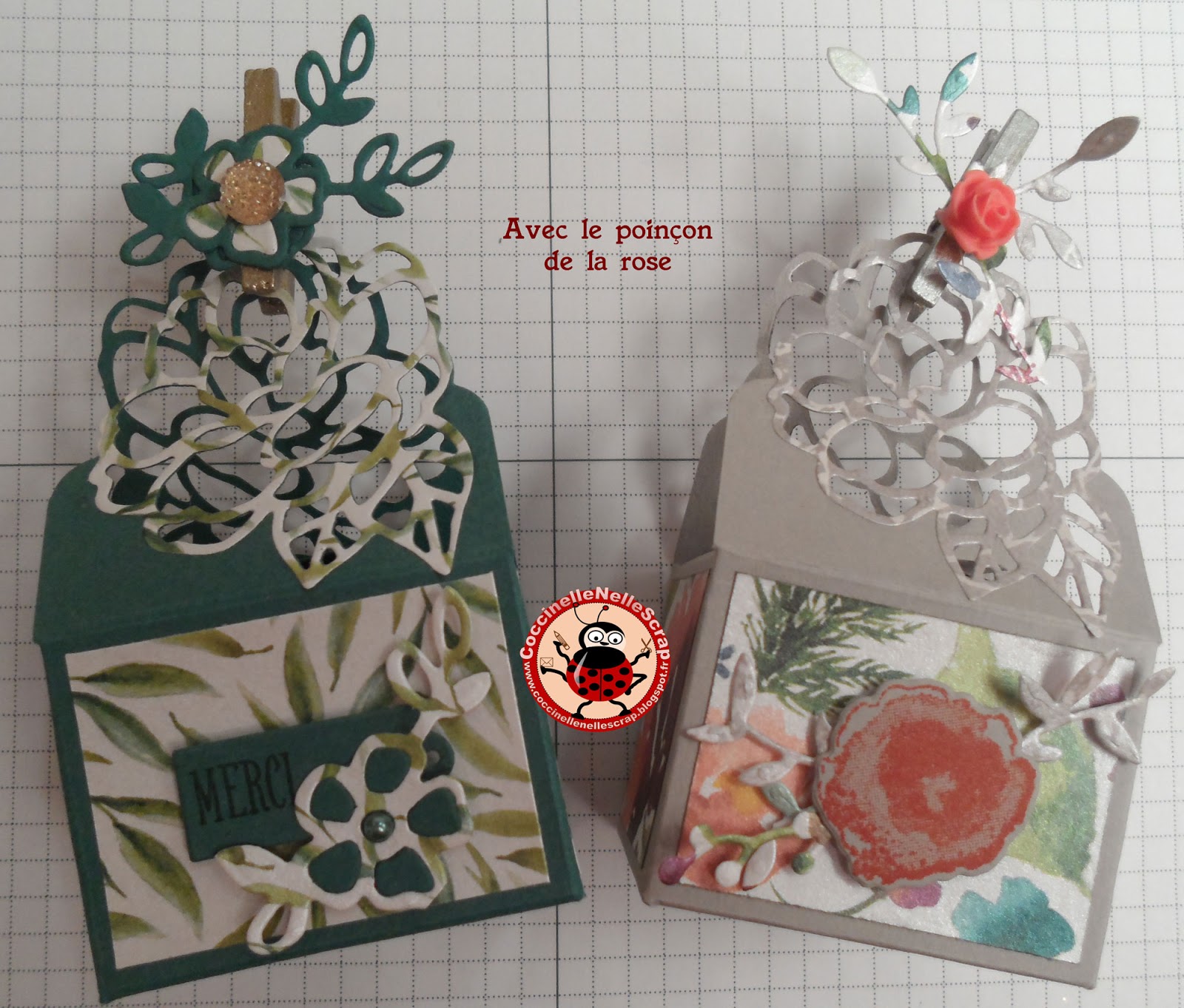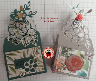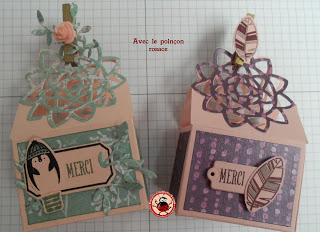 C\’est en détournant les poinçons Thinlits \ »Etiquettes botaniques\ » que j\’ai réalisé ce projet qui m\’a été inspiré par une amie qui m\’a offert une boîte semblable qu\’elle avait confectionnée avec un dies qui découpait entièrement la boîte. L\’avantage avec les poinçons Thinlits \ »Etiquettes botaniques\ », c\’est que l\’on peut réaliser 3 boîtes d\’un modèle différent.