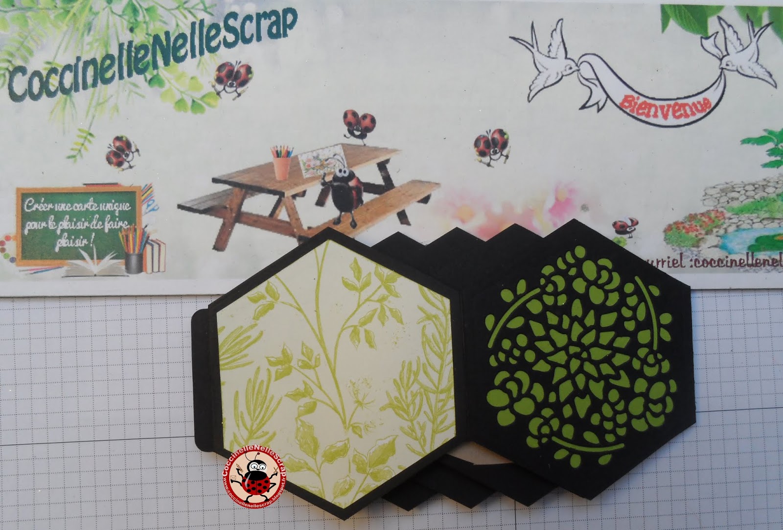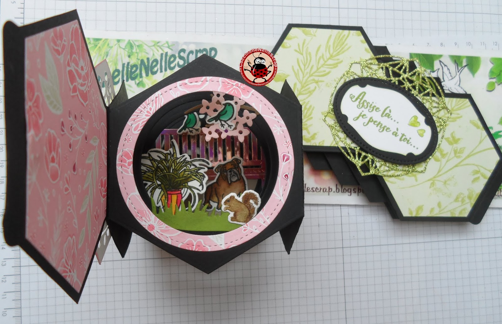 Devant le succès remporté par la présentation de cette carte Pop Up hexagonale que j\’ai baptisée \ »Un banc au fond du parc\ », je me devais de ne pas trop vous faire languir 😉😉😉