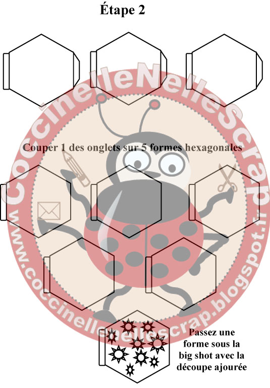 1 feuille et demie au format A4 ou 1 feuille de 12\ »x12\ » de papier cartonné Noir nu pour découpé 9 parties hexagonales avec les onglets, du grand poinçon \ »Jardinière\ »;