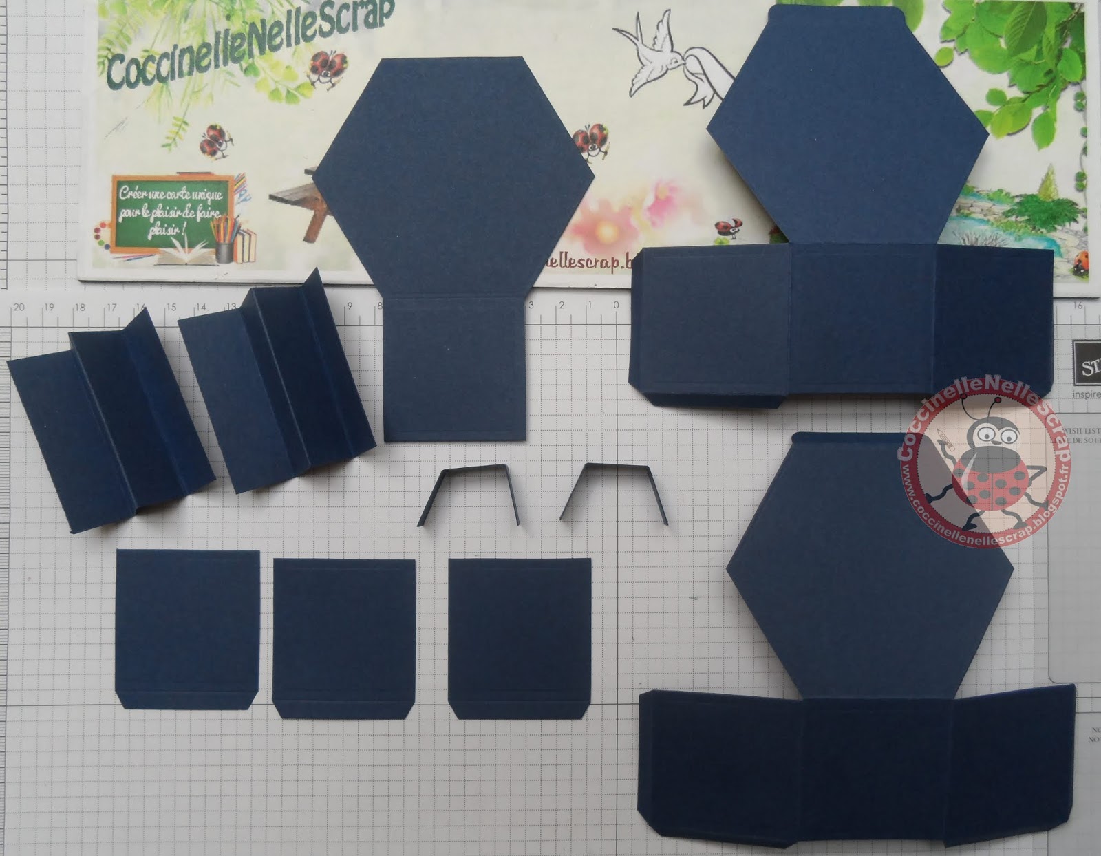 3 grands poinçons entiers du set Jardinières + 1 des carrés qui forment normalement le tour de la boîte hexagonale,