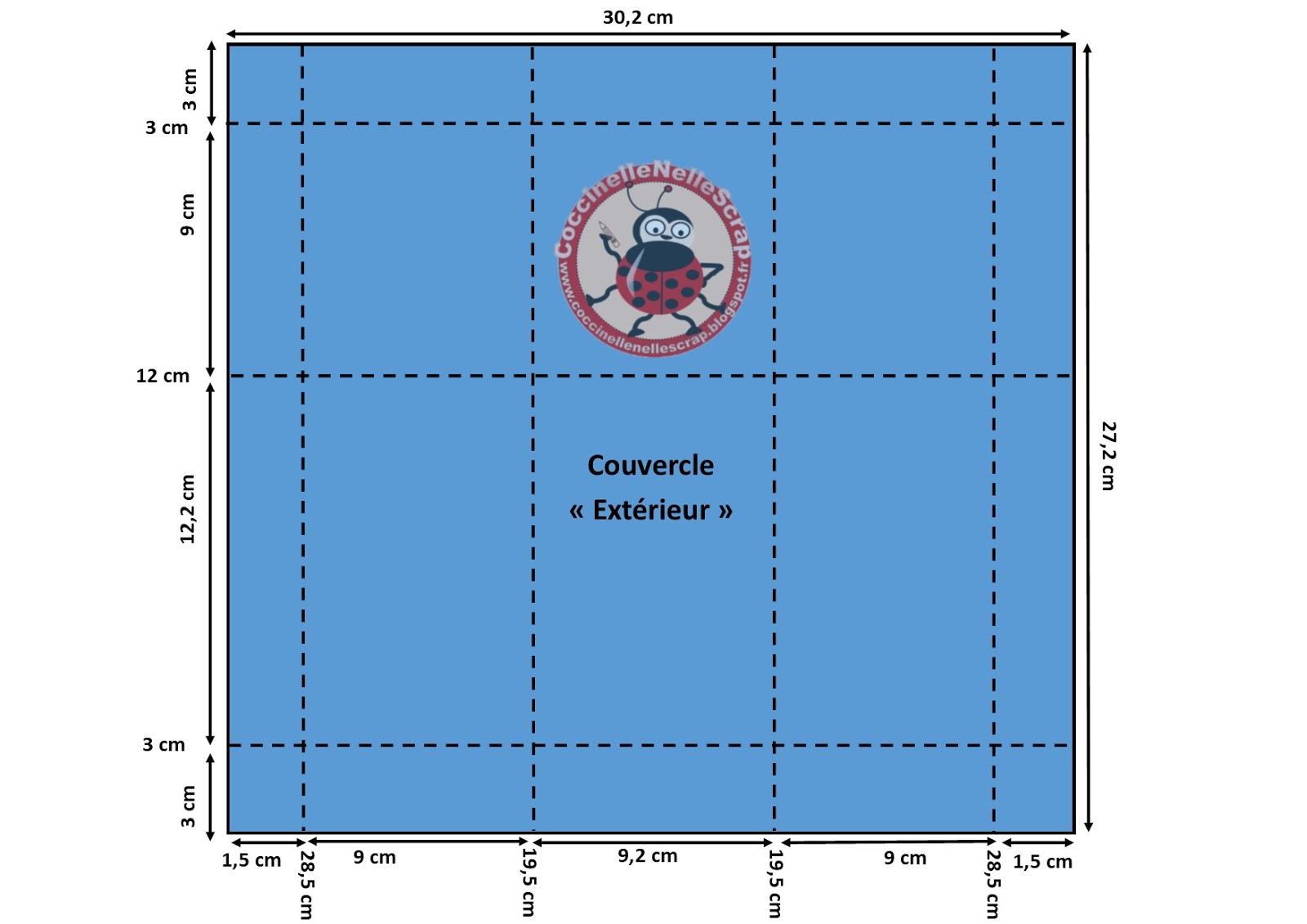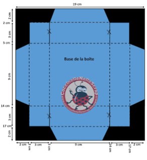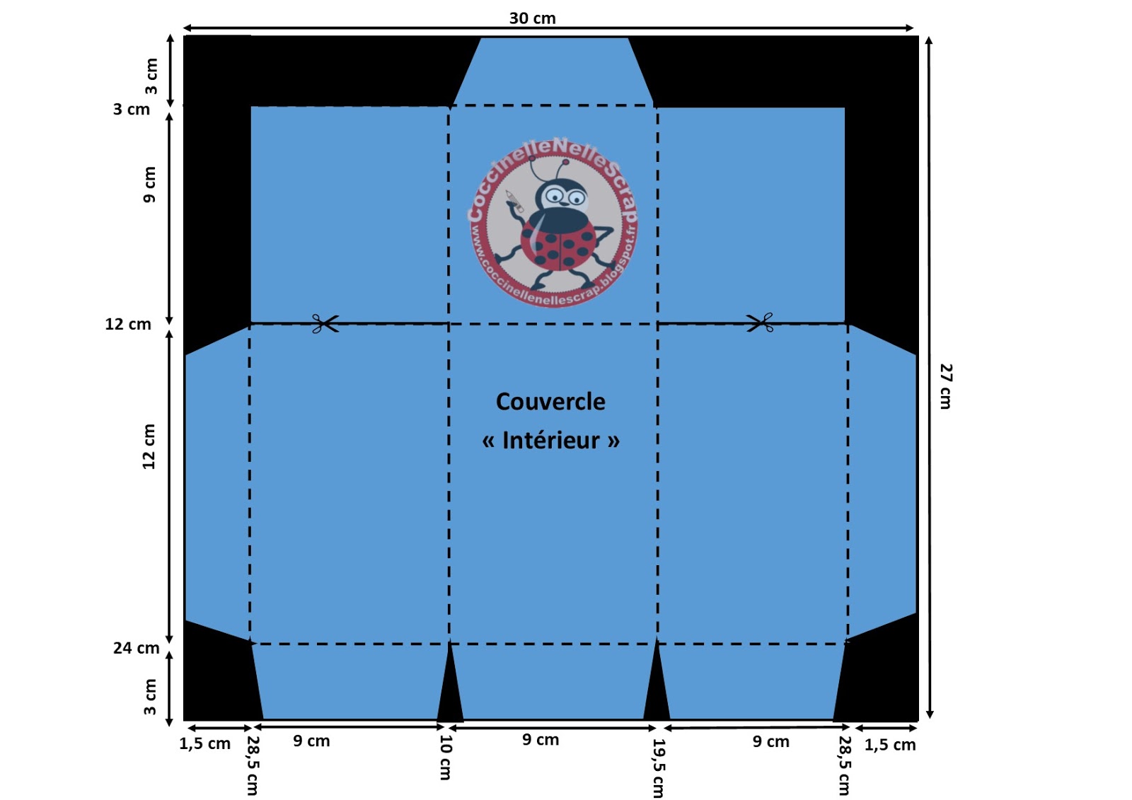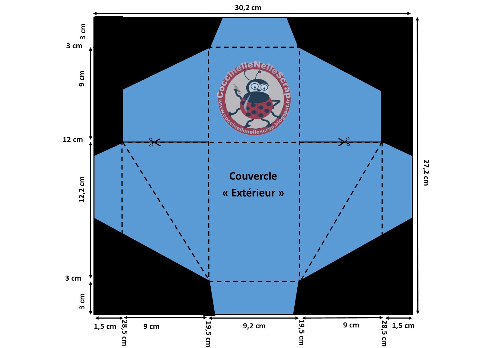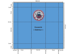 Je vous indique juste les dimensions des différentes pièces qui composent cette boîte ainsi que les schémas de coupes et la liste des fournitures que j\’ai employées.