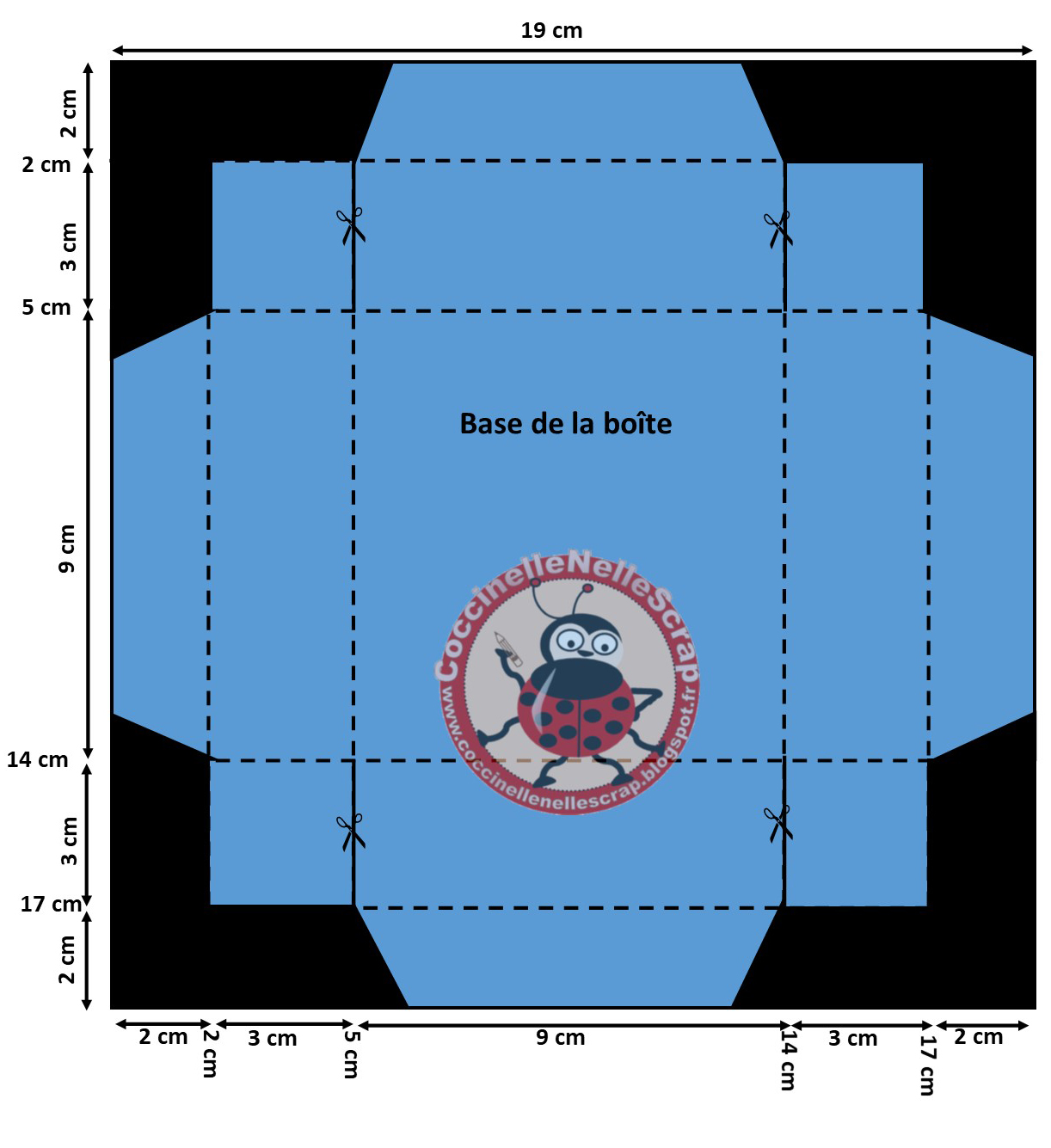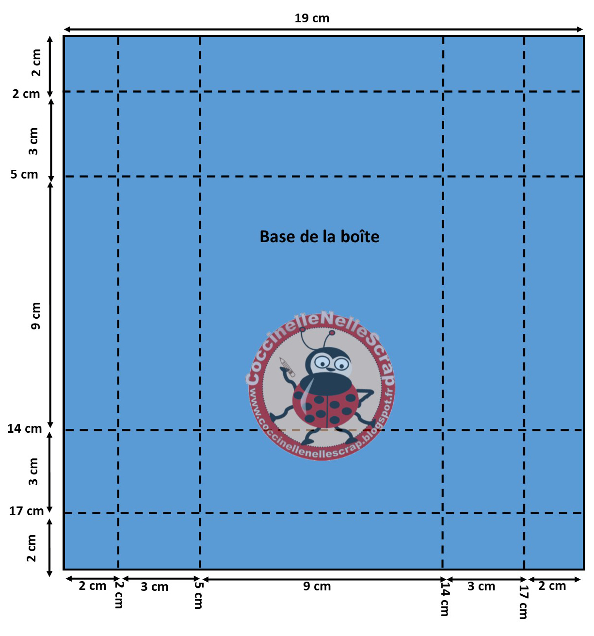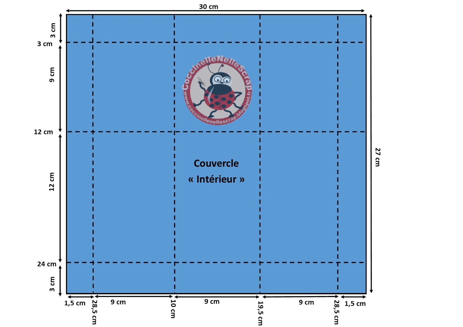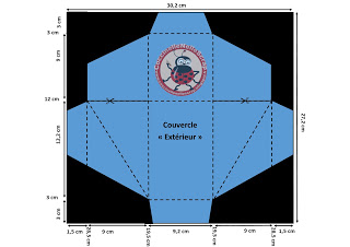 Je vous indique juste les dimensions des différentes pièces qui composent cette boîte ainsi que les schémas de coupes et la liste des fournitures que j\’ai employées.