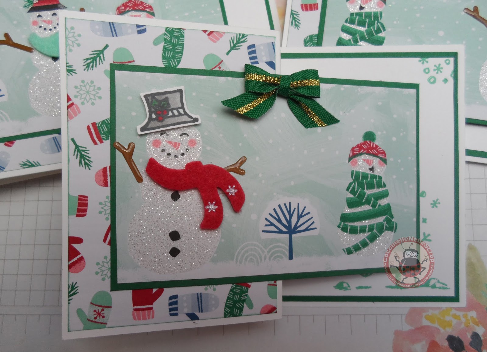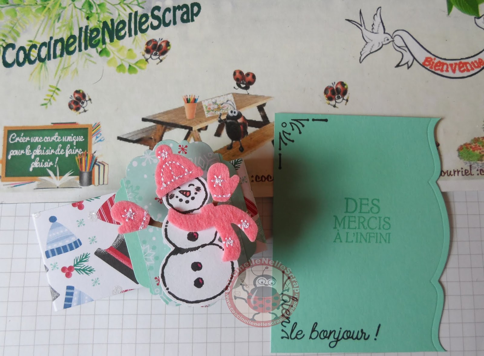C\’est le papier Design Spécialité Le Bonhomme de Neige qui m\’a inspiré cette carte très facile à confectionner.