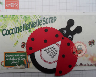 Pour accompagner mes petits cadeaux de remerciement du mois d\’octobre, j\’ai confectionné cette amusante petite carte coccinelle qui m\’a été inspirée par une cliente.