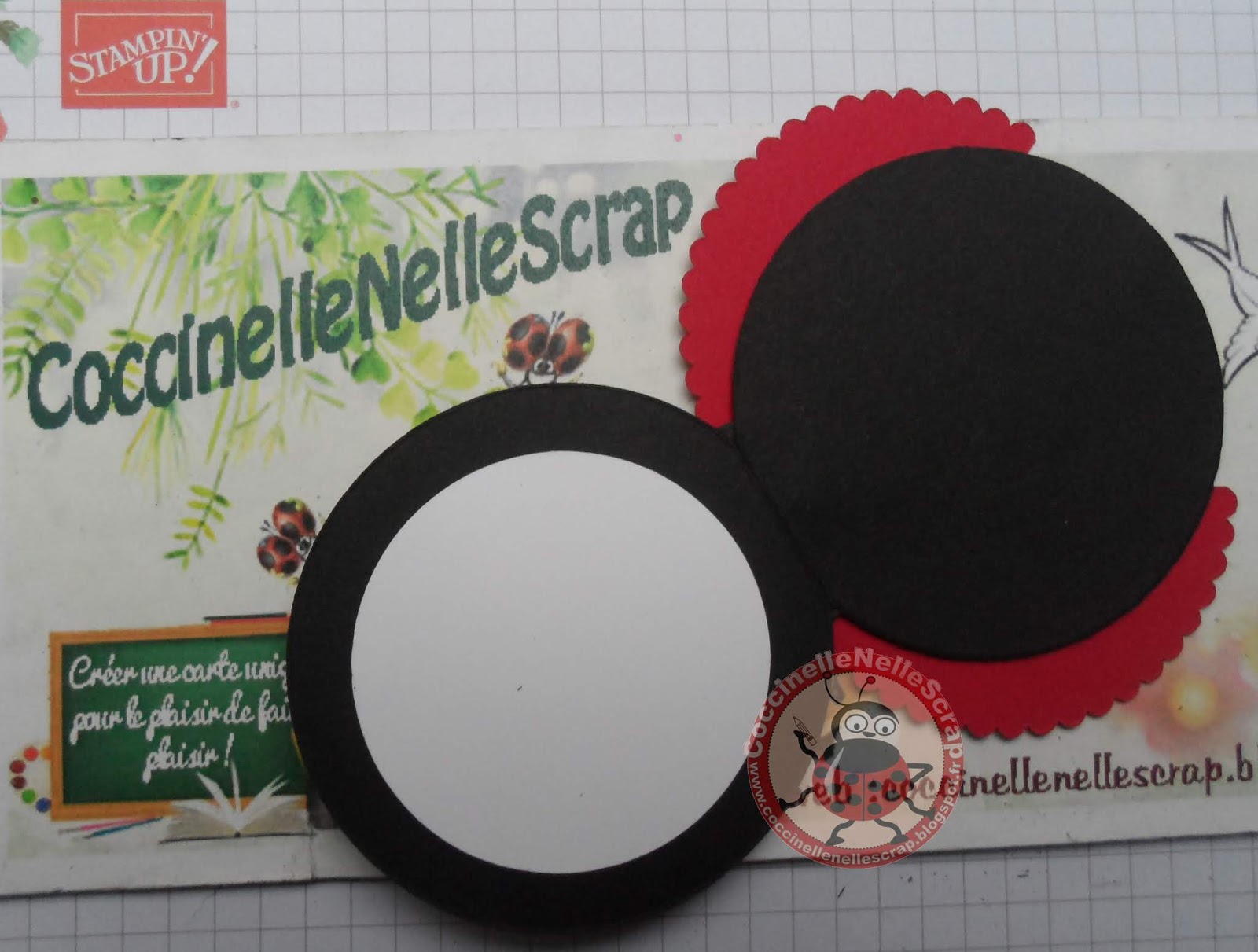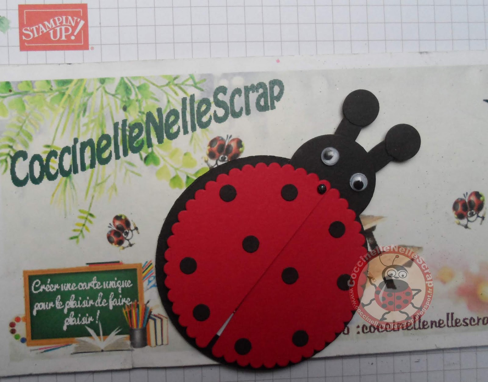 Pour accompagner mes petits cadeaux de remerciement du mois d\’octobre, j\’ai confectionné cette amusante petite carte coccinelle qui m\’a été inspirée par une cliente.