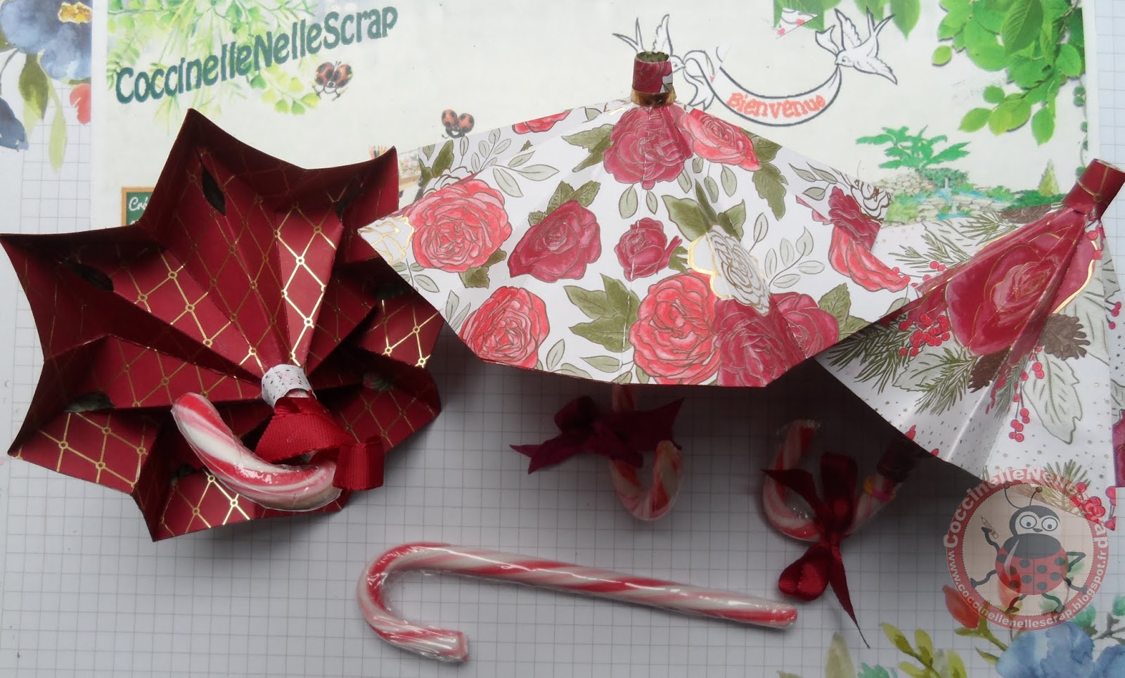 C\’est parce que j\’avais envie de présenter les sucres d\’orge d\’une façon originale que j\’ai eu l\’idée d\’en faire des parapluies.