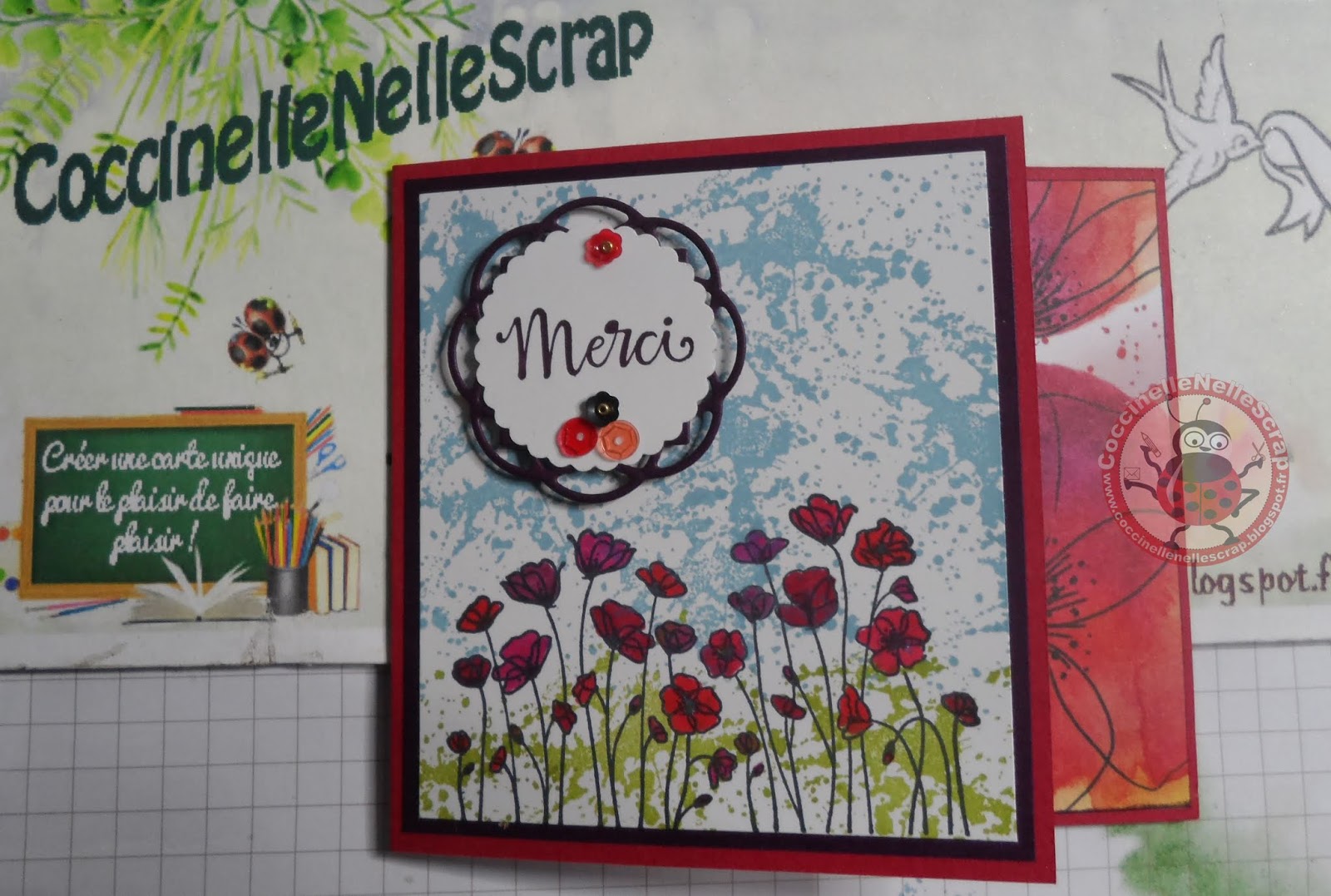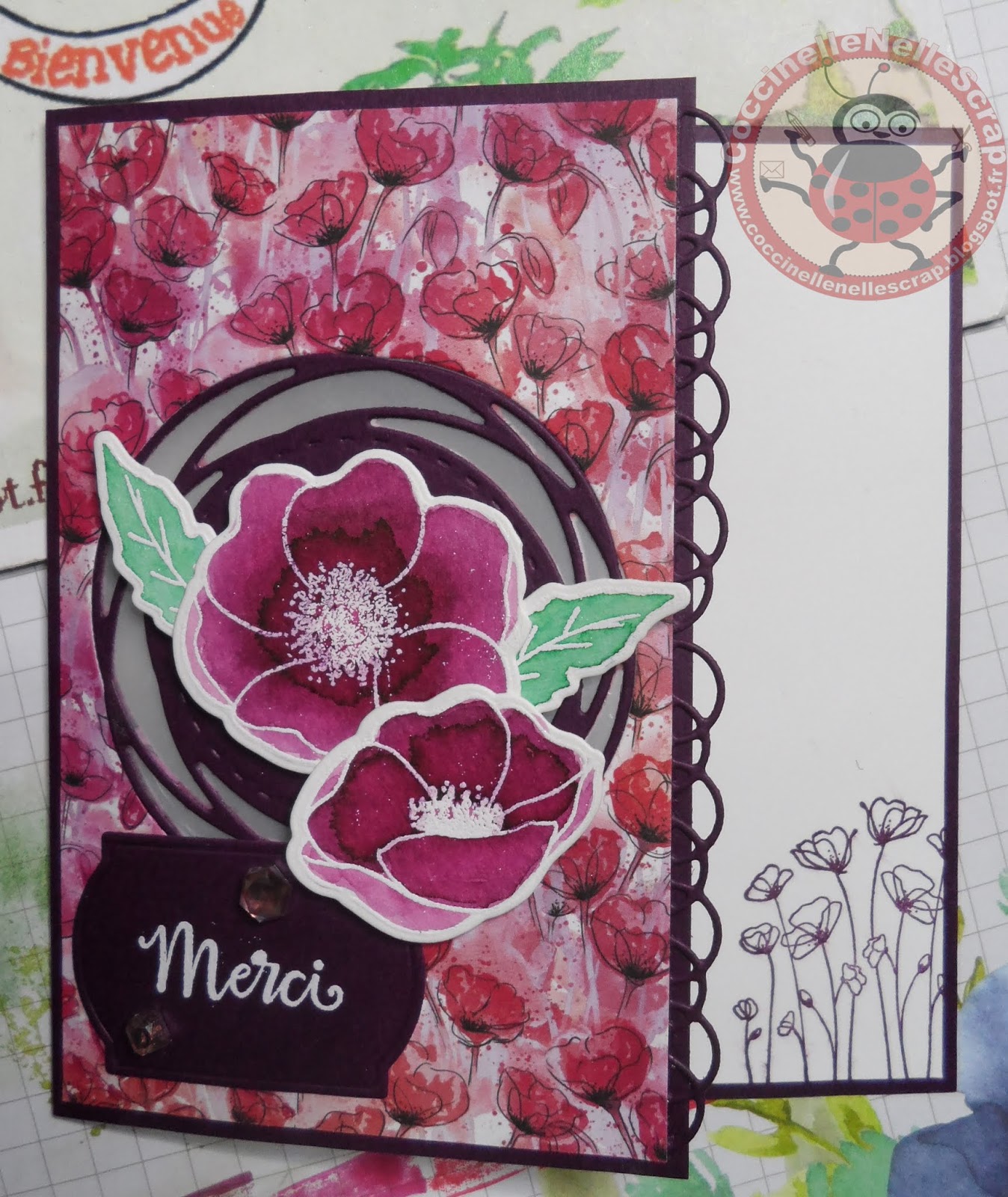 Parce qu\’on a parfois besoin de créer des cartes en nombre qui doivent néanmoins être jolies et parce que j\’adore les coquelicots, je vous propose de jouer avec le set de tampons \ »Painted poppies\ » et les set de poinçons qui lui est associé \ »Etiquettes peintes\ ».