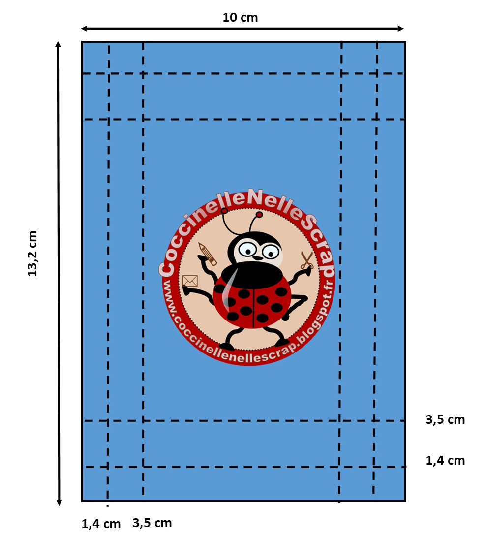 - 1 rectangle de papier cartonné \ »Très vanille\ » de 13,2 x 10 cm marqué à 1,4 et 3,5 cm sur les 4 côtés ;