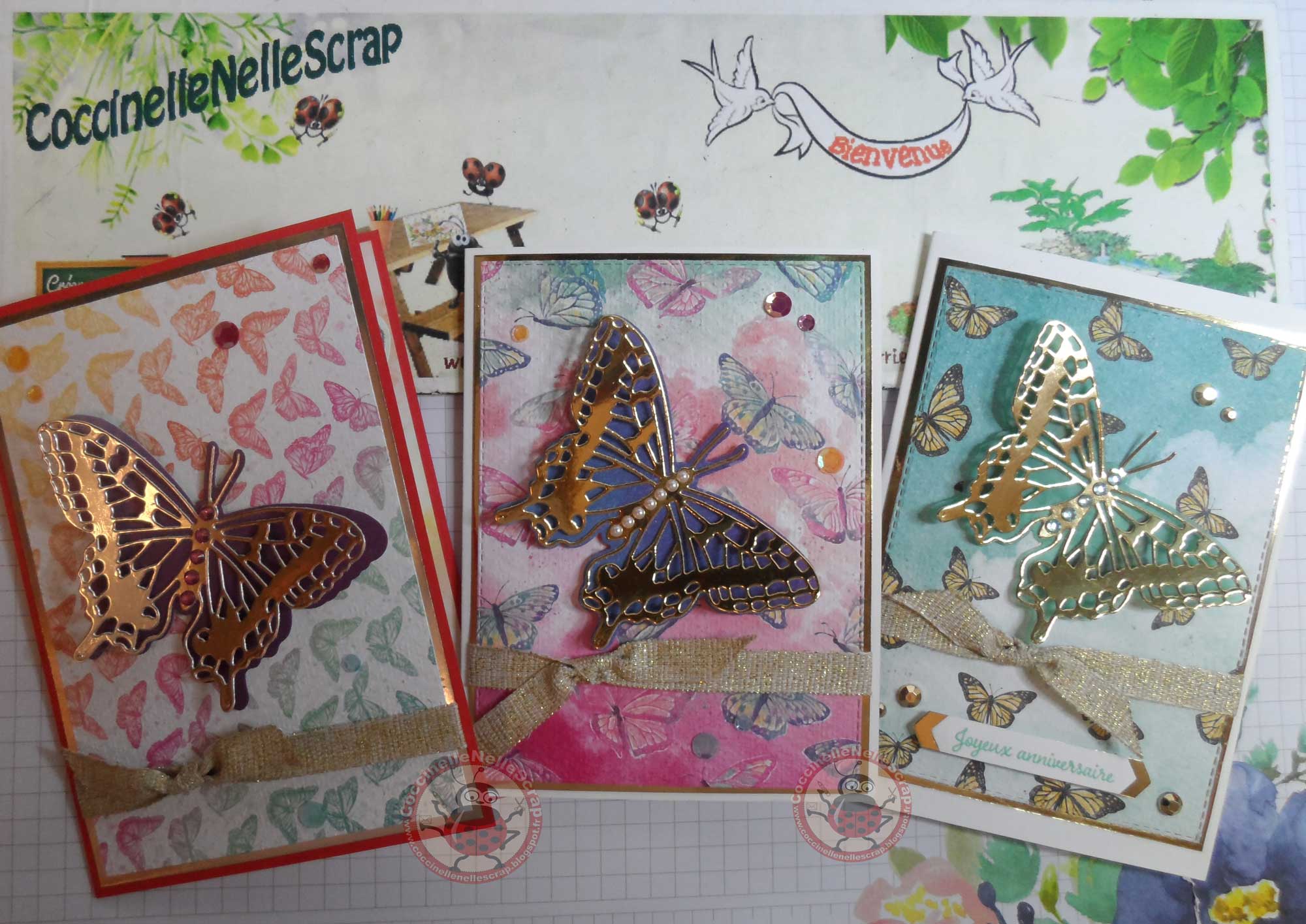 Comme vous avez été nombreuses à me dire que vous l\’aimiez et que le temps me manque pour en offrir une en cadeau de remerciement de commande, j\’ai décidé de procéder à un tirage au sort pour faire gagner deux de ces trois cartes Pop Up \ »Une envolée de papillons\ » que j\’ai créées.