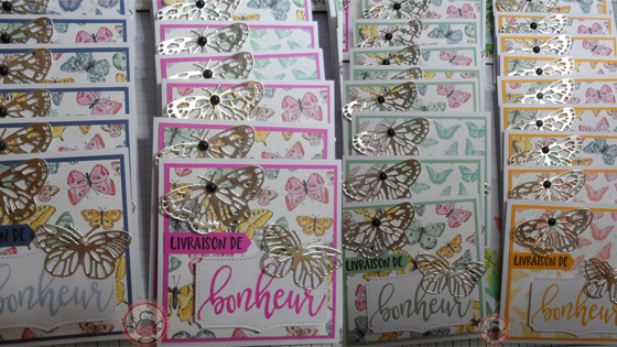 Faciles et rapides à réaliser, ces petites cartes aux couleurs très peps ont bien livré du bonheur et de la joie à en croire le retour des clientes qui l’ont reçue.