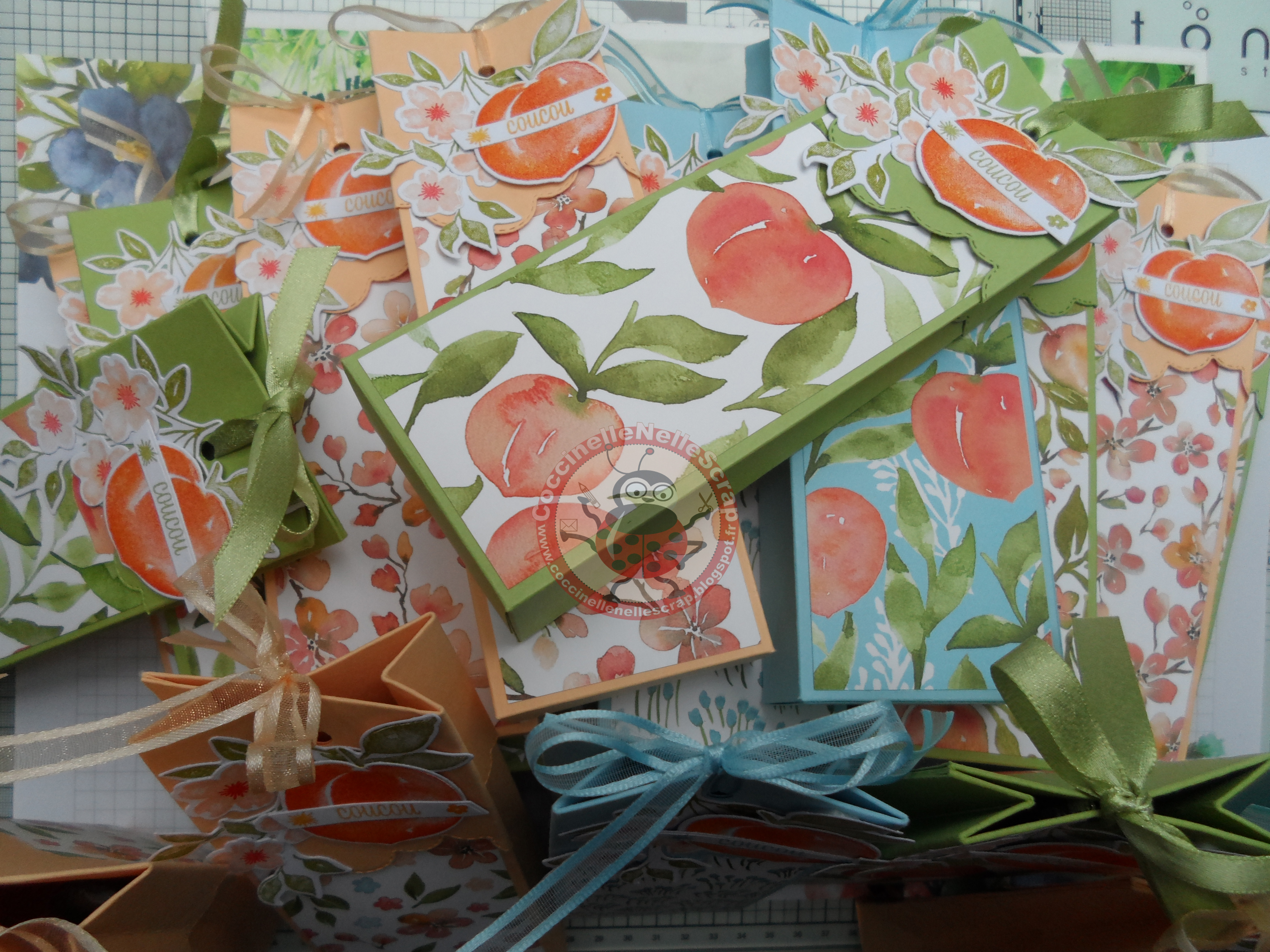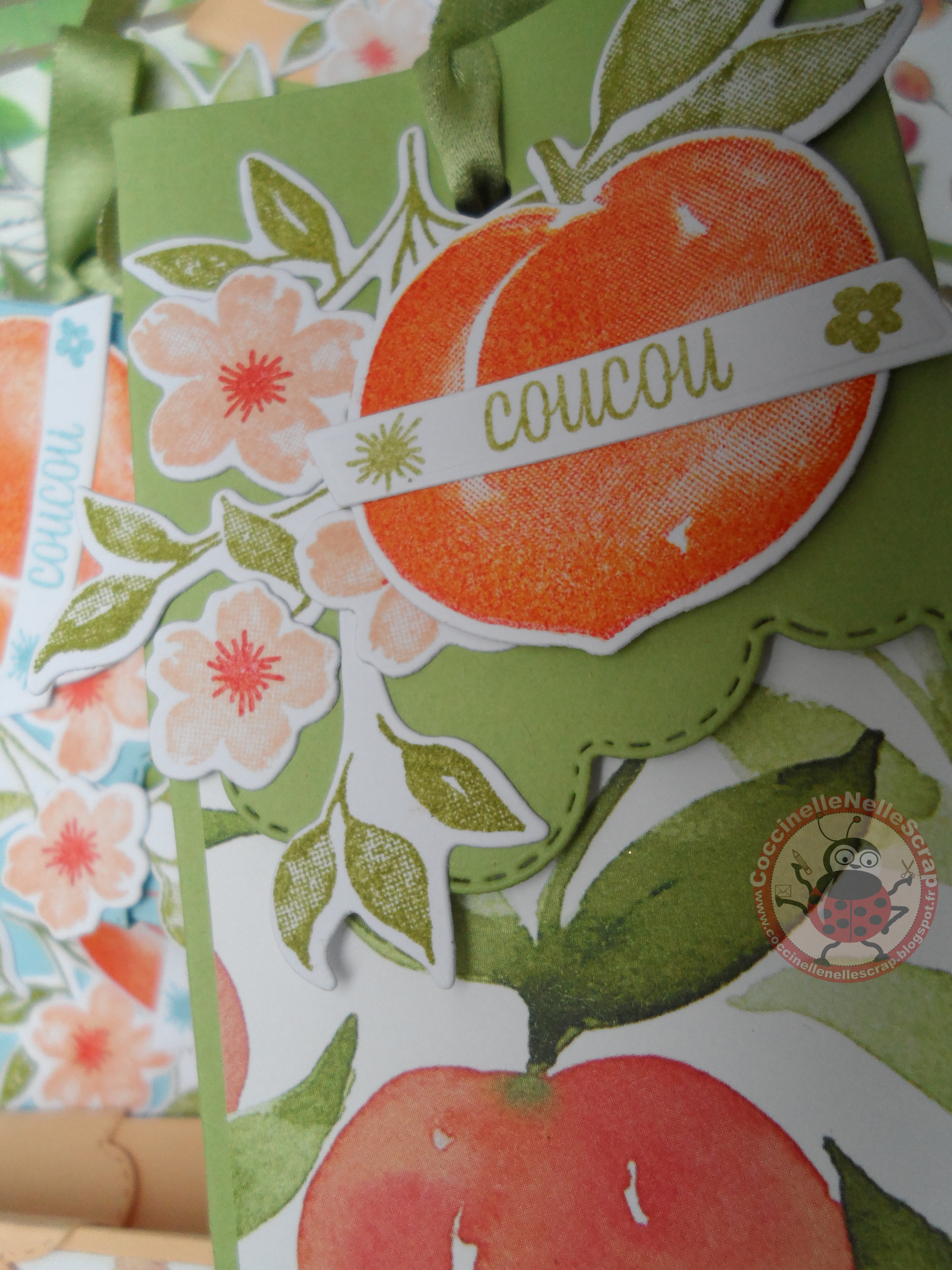 • 2 rectangles de papier de la série Design cueillette de pêches de 15,5 x 5,5 cm ;