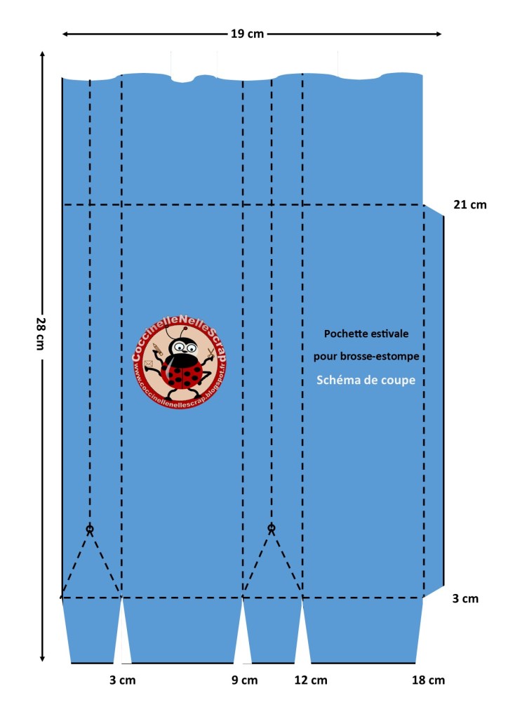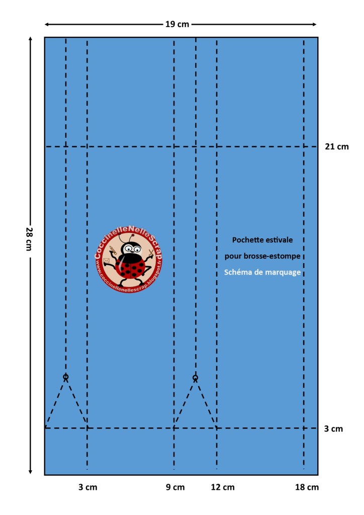 • 1 rectangle de papier cartonné « Béguin bleu » de 28 x 19 cm, marqué sur la largeur à 3 – 9 – 12 et 18 cm et sur la longueur à 3 et 21 cm (voir schémas ci-dessous) ;