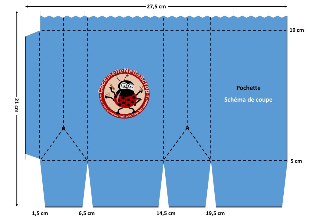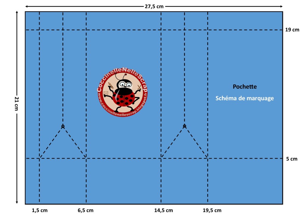 Pour une pochette qui mesure finie : 14 x 8 x 5 cm