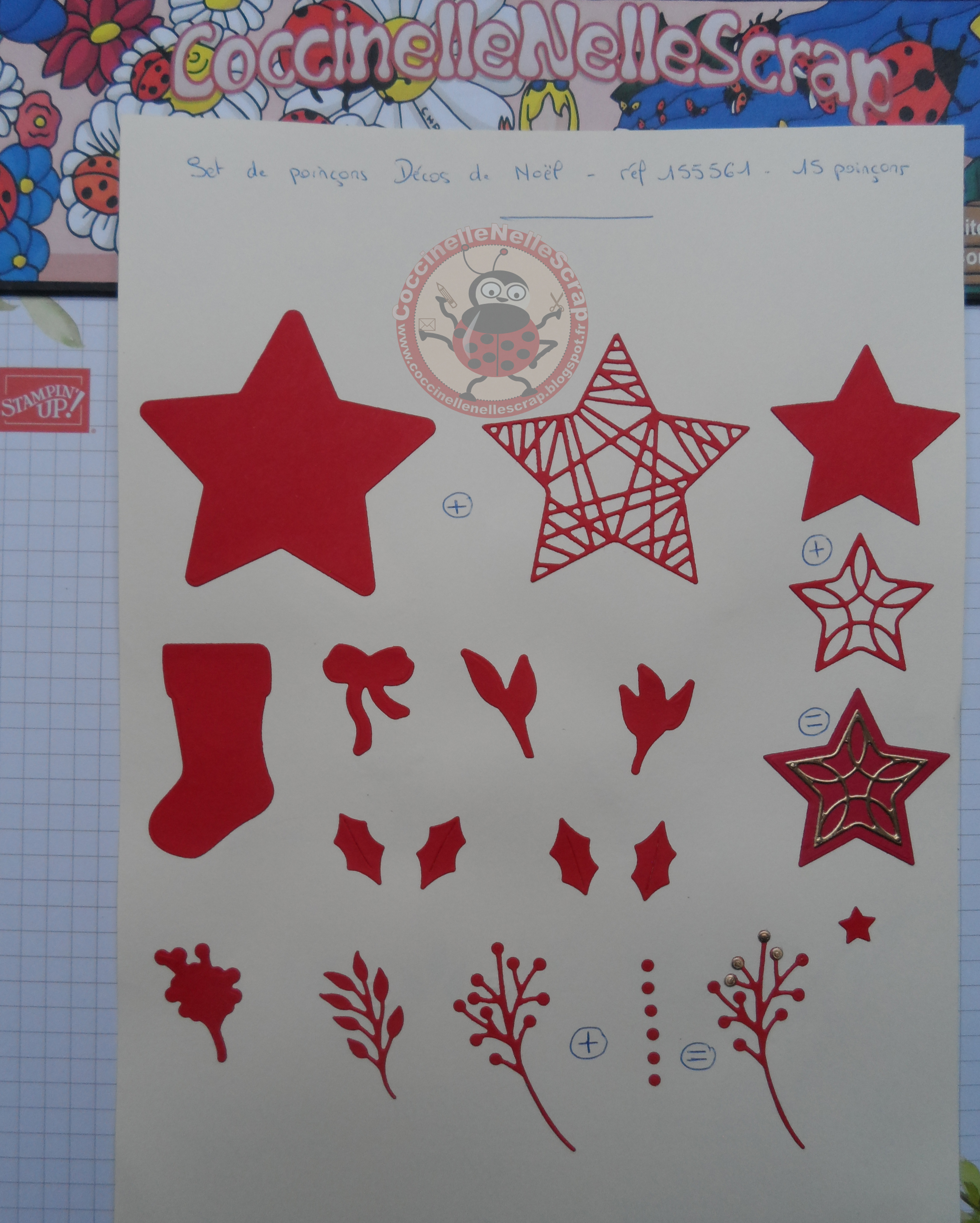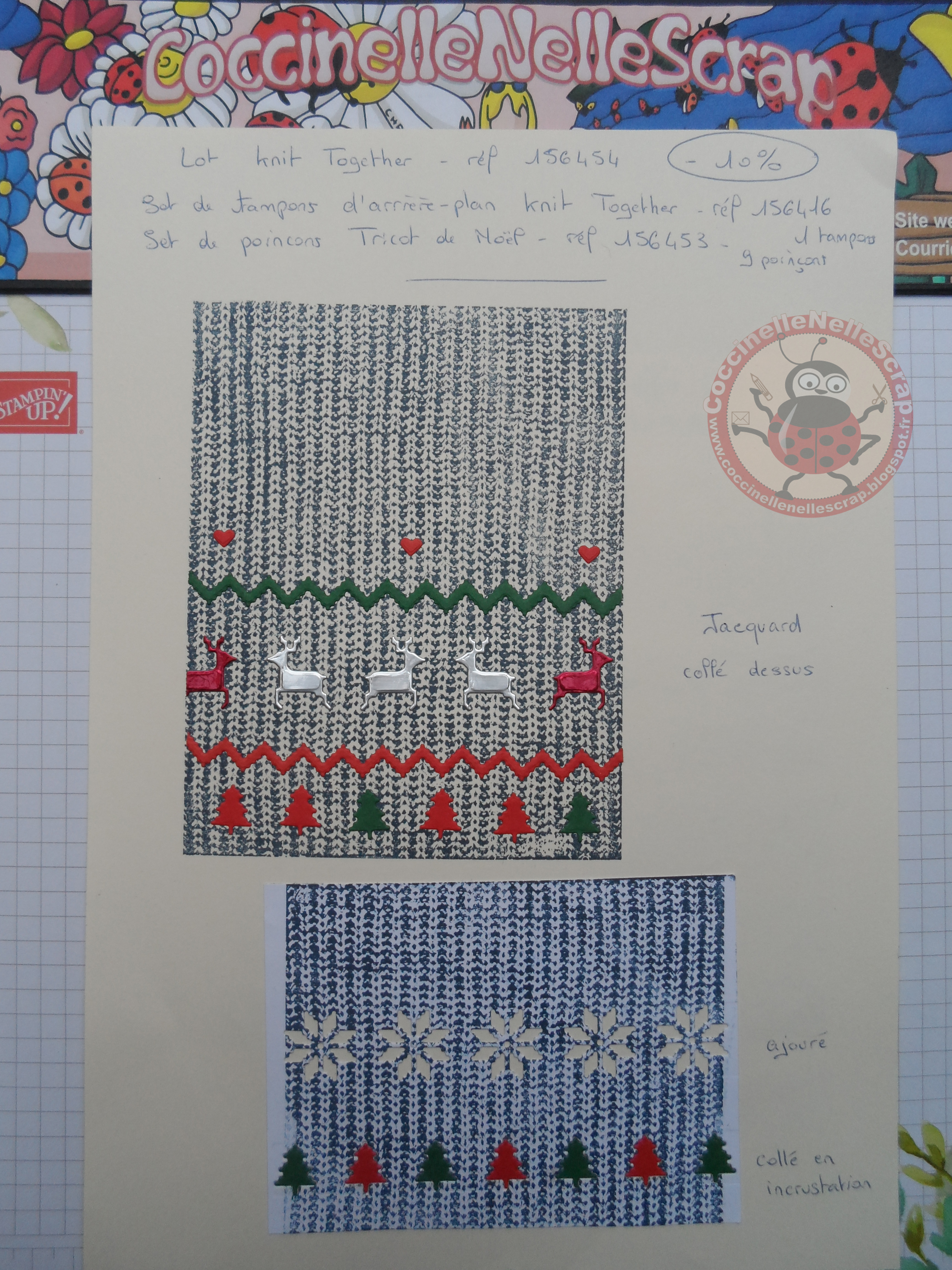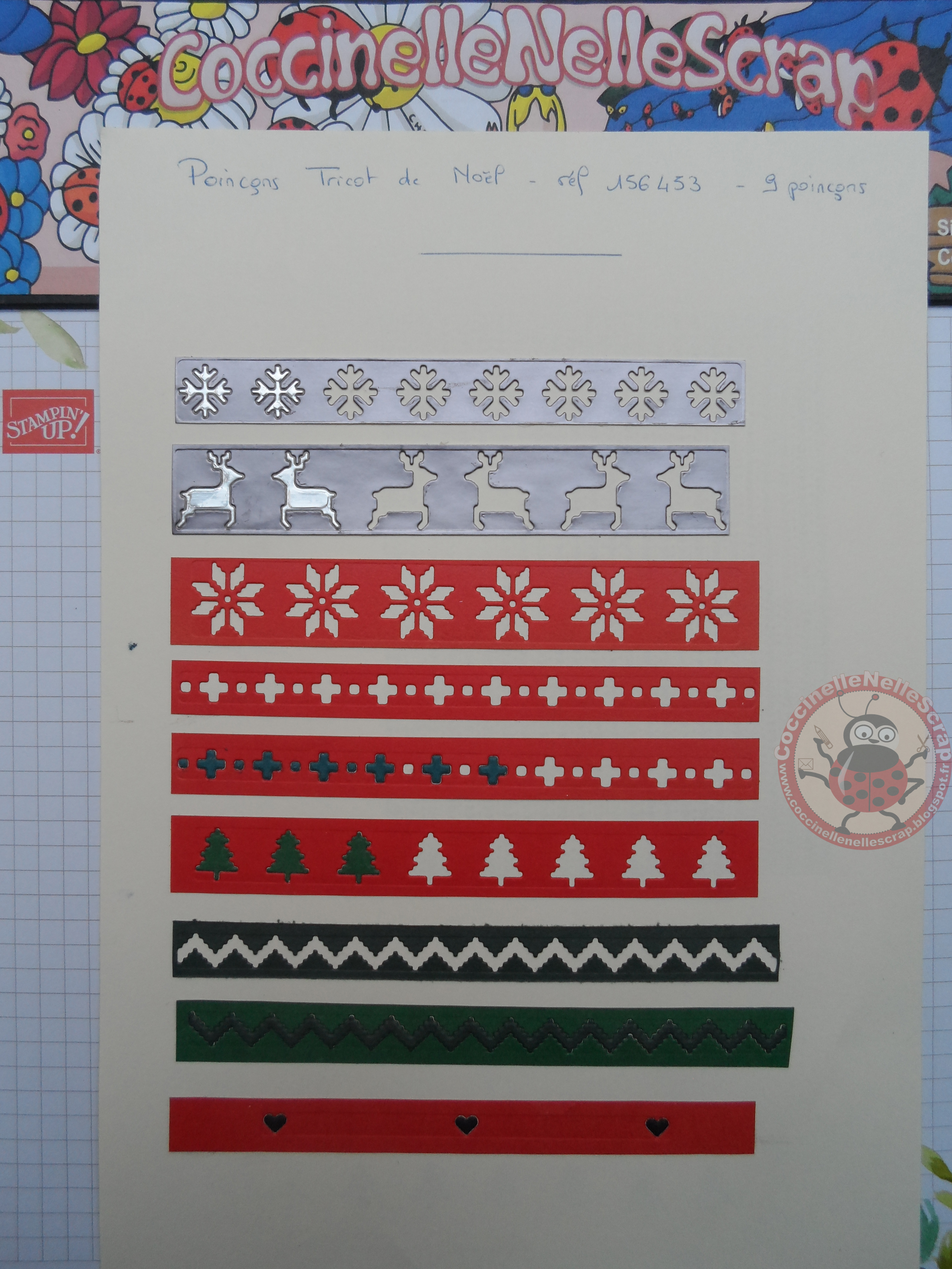 Pour la boîte avec l’étoile, j’ai utilisé du papier cartonné Rouge-Rouge à l’intérieur et Blanc simple pour l’extérieur. Concernant la boîte au décor tricot, j’ai utilisé du papier cartonné Horizon de Bruyère à l’intérieur et Freesia en fleur à l’extérieur. Vous pouvez retrouver, plus bas, l’ensemble des fournitures notamment pour les décorations.