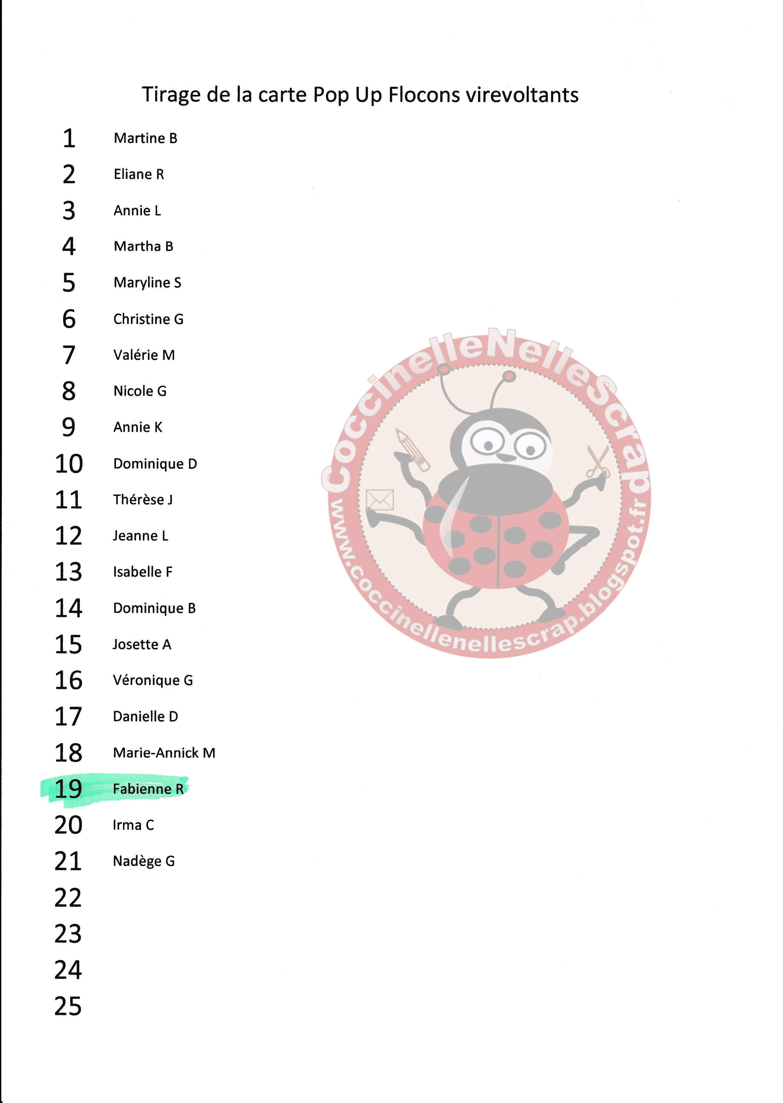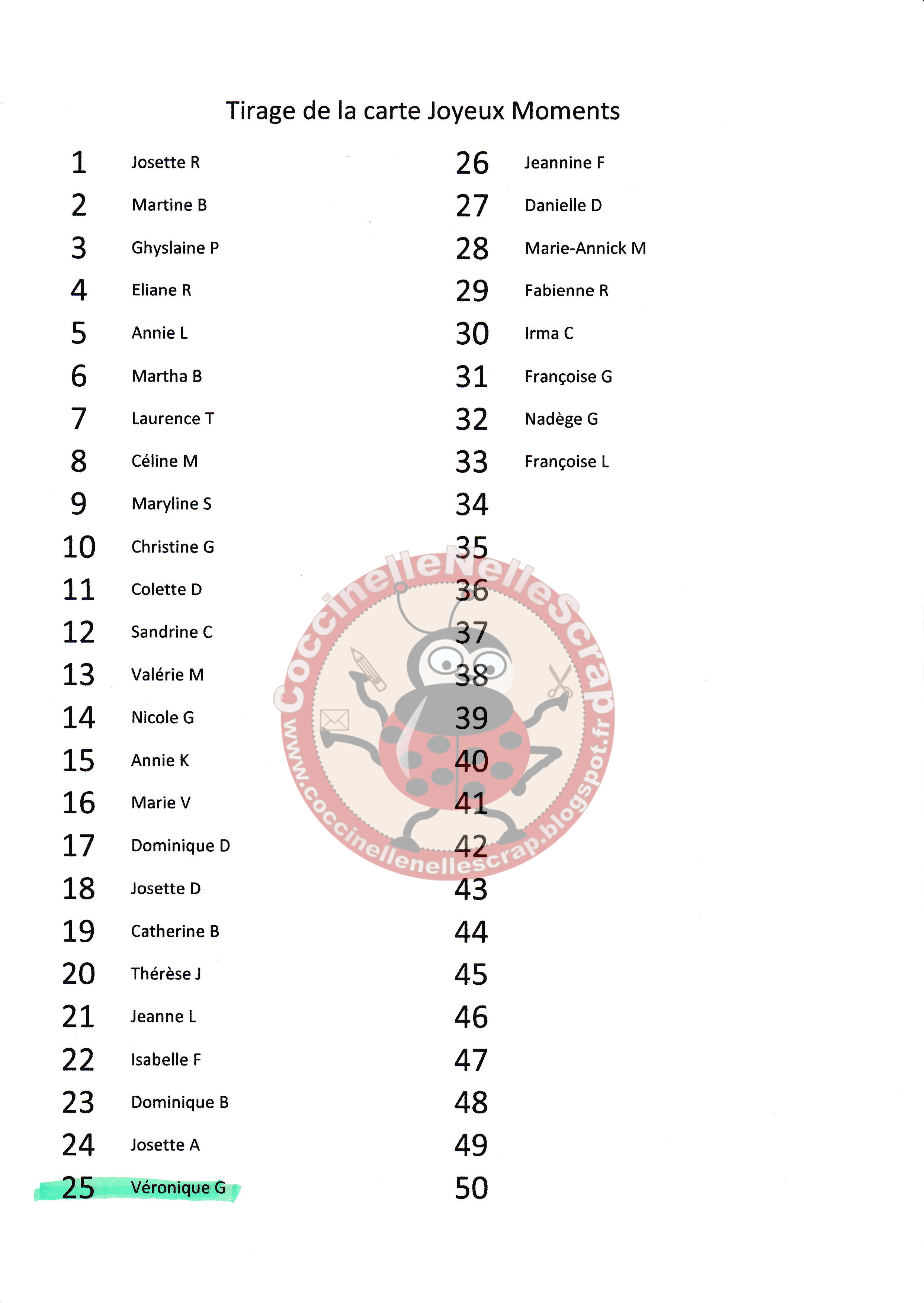Nous avons également procédé au tirage au sort des cartes que j’avais mises en jeu en août dernier. Comme vous pourrez le voir sur les listes, ci-dessous, les heureuses gagnantes sont :