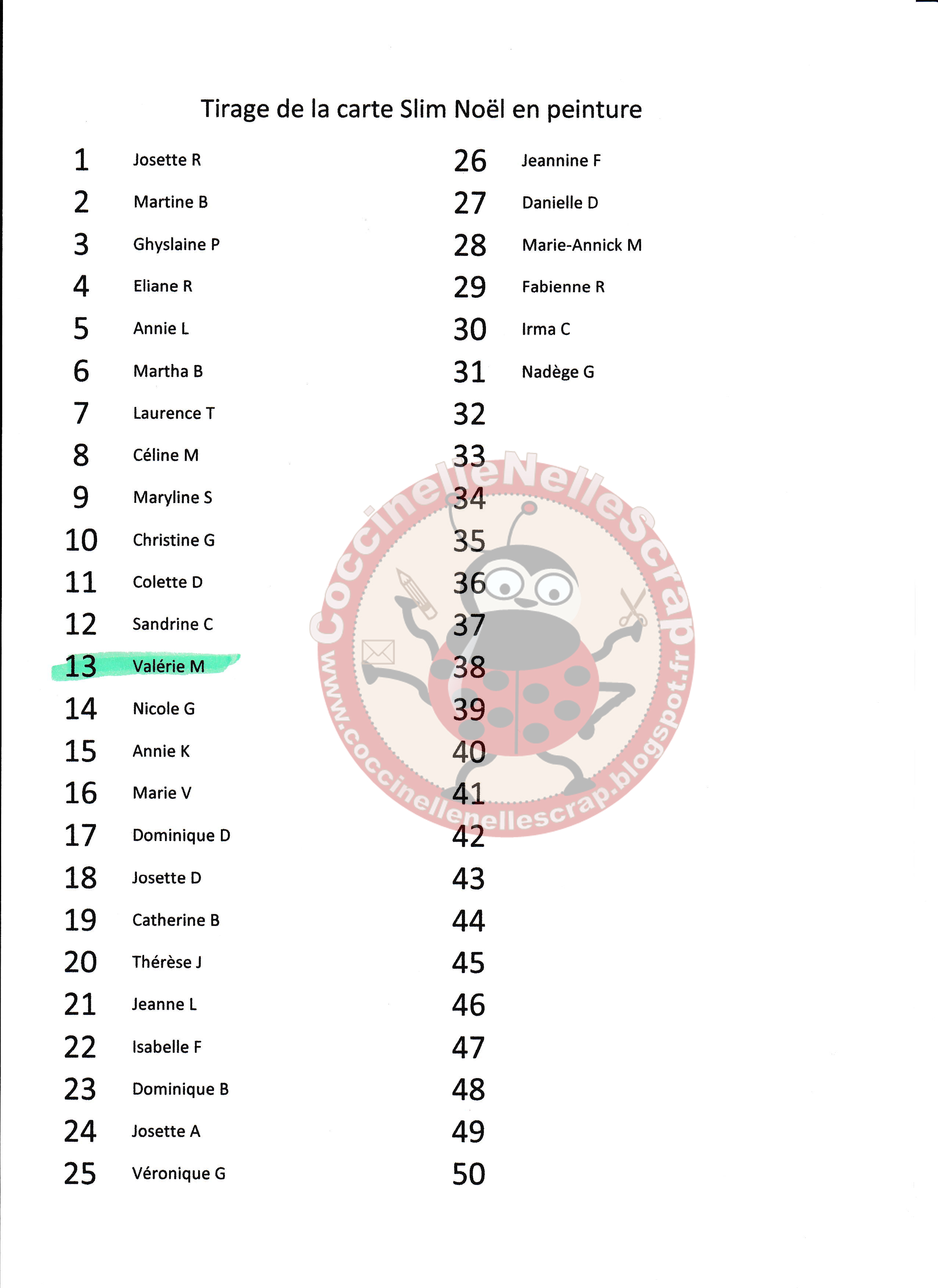 - pour la carte Slim Noël en peinture avec un pinceau Wink Of Stella : Valérie M ;