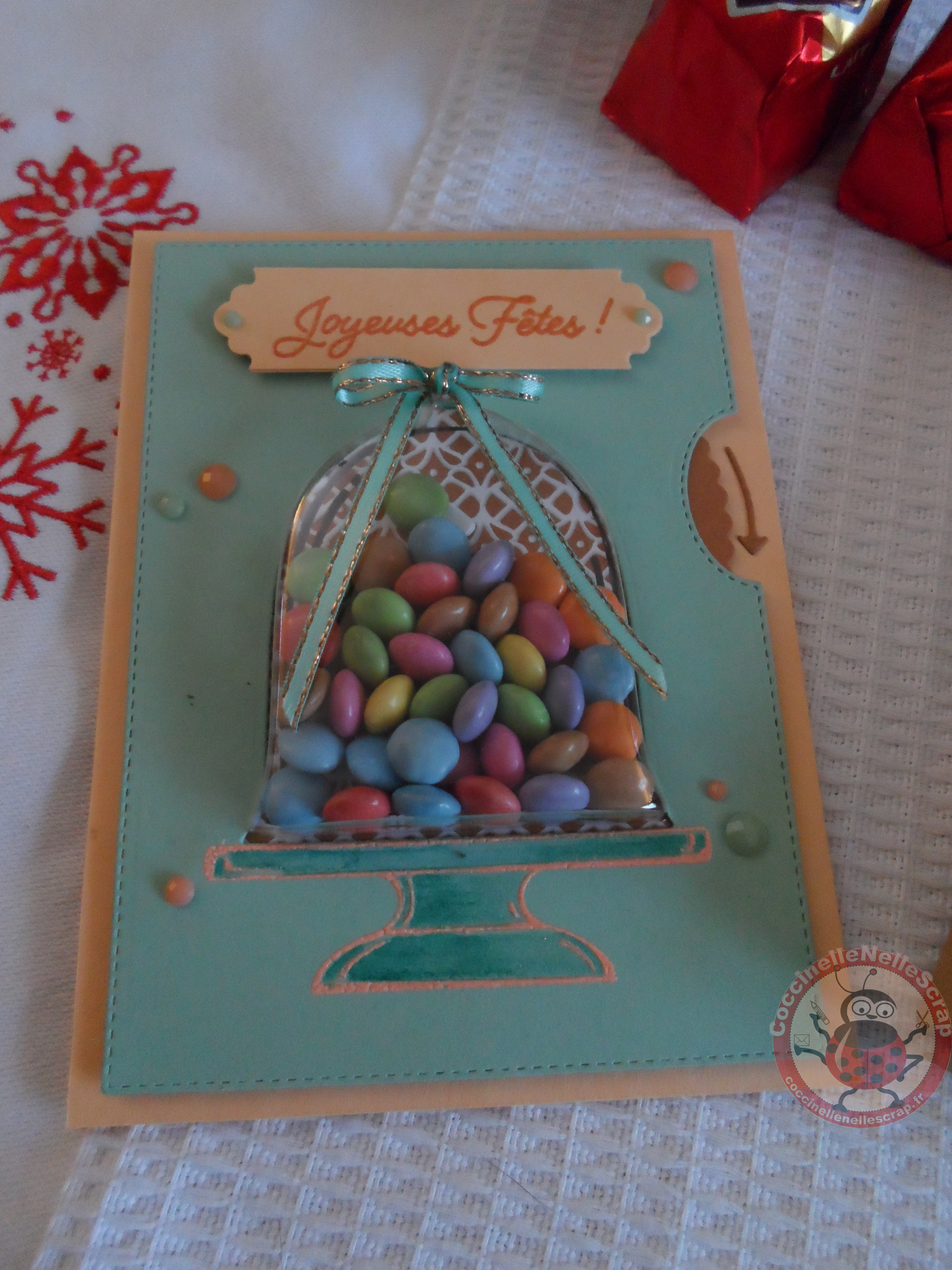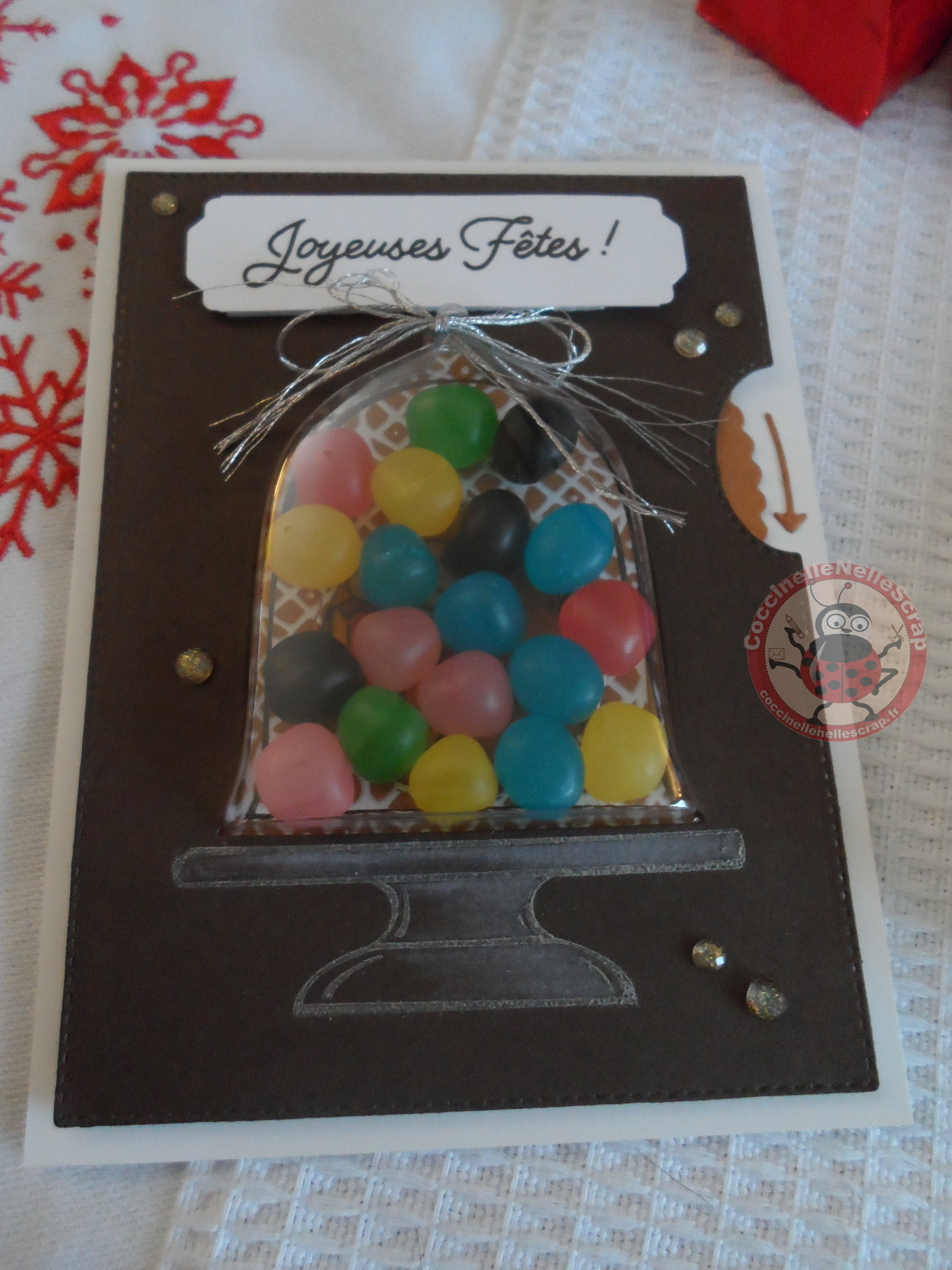 C’est avec grand plaisir que je vous présente la carte distributeur de bonbons que j’ai créée avec mon set de poinçons fétiche Tourbillon d’images. Souvenez-vous, c’est également avec ce set de poinçons que j’ai créé la carte Pop Up Flocons virevoltants que vous avez adorée.
