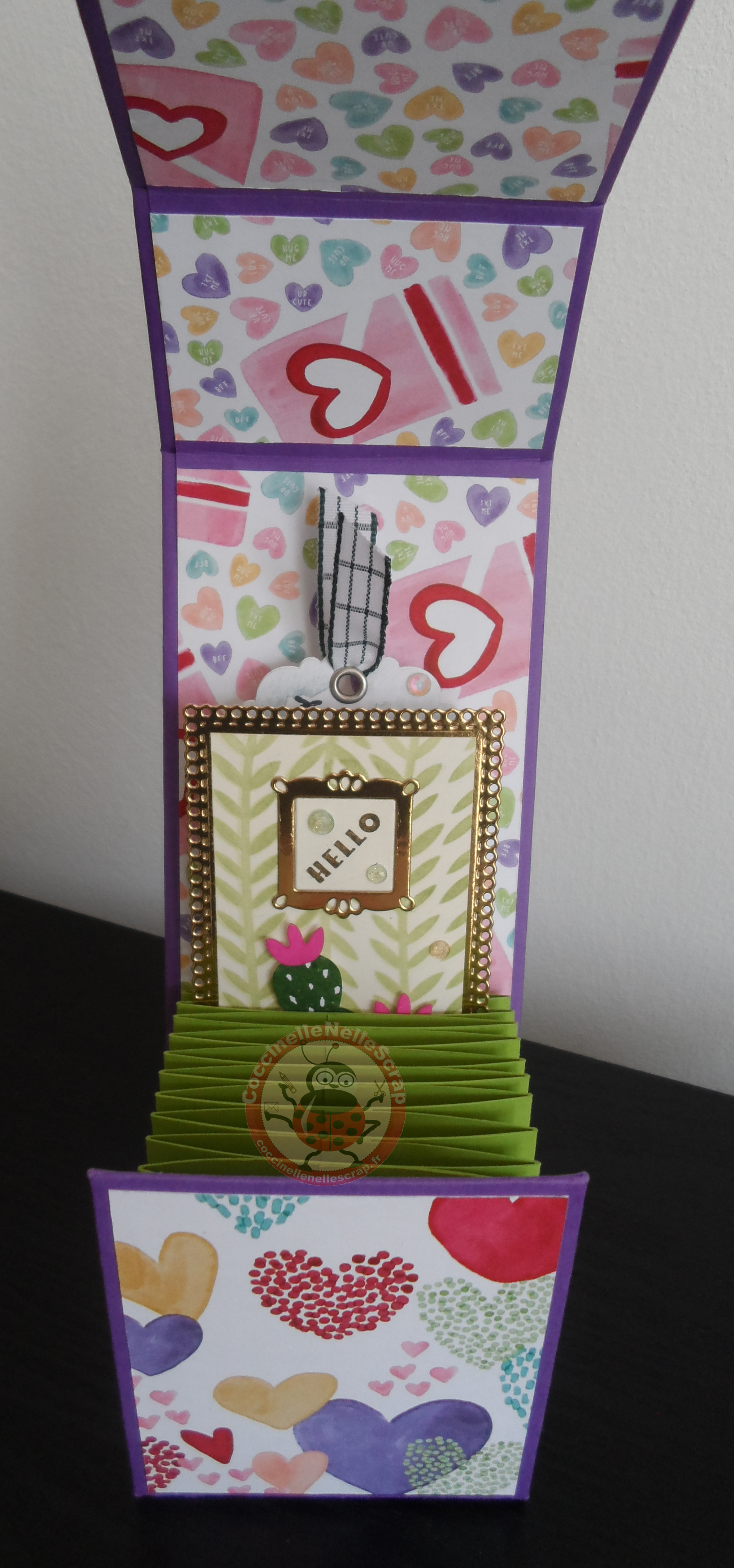 Pour confectionner la version présentée, vous aurez besoin, outre le matériel de base (colle, crayon de papier, coupe-papier, ciseaux, mousse 3D, bloc transparent ou Stamparatus, etc…), de :