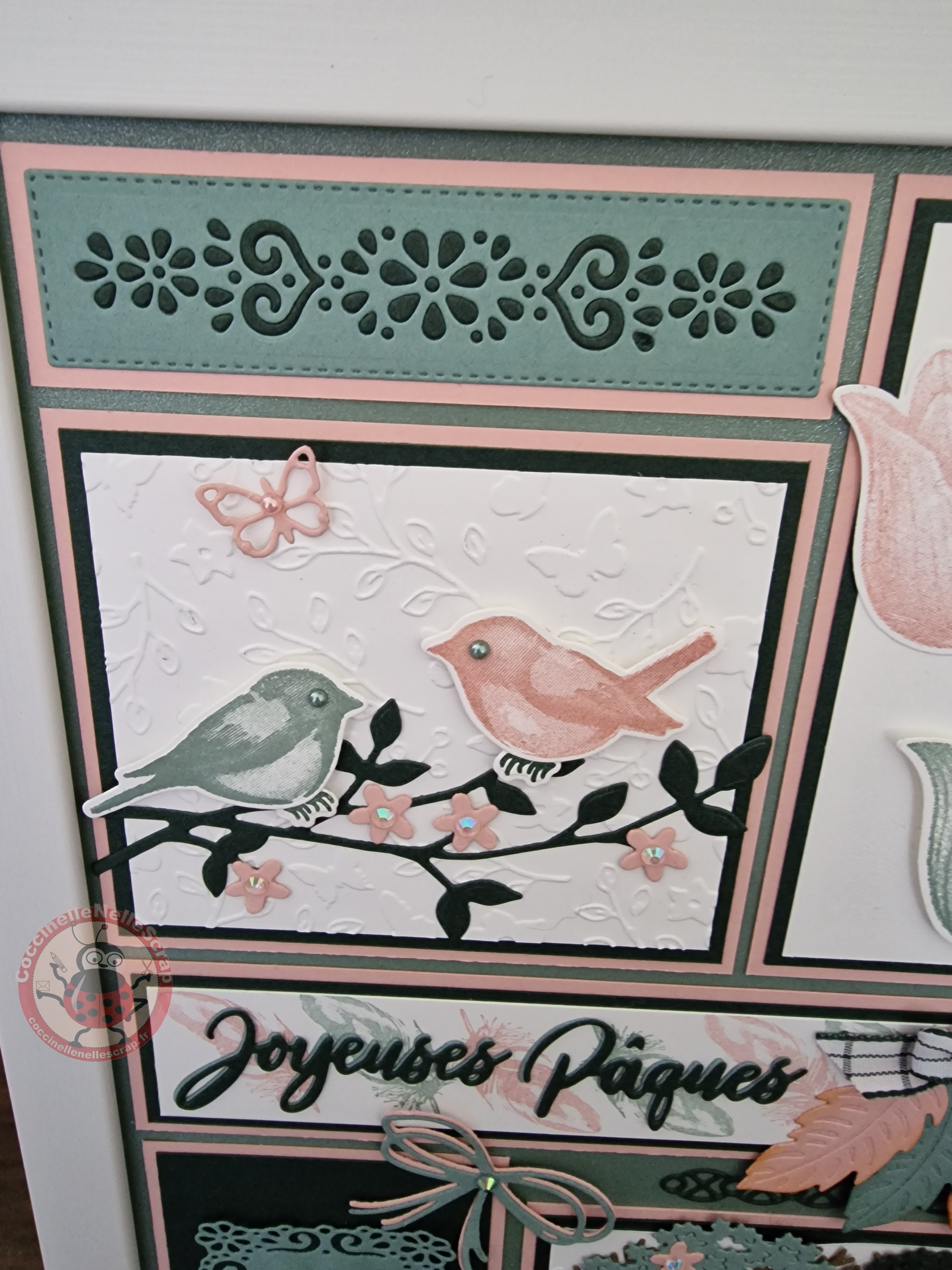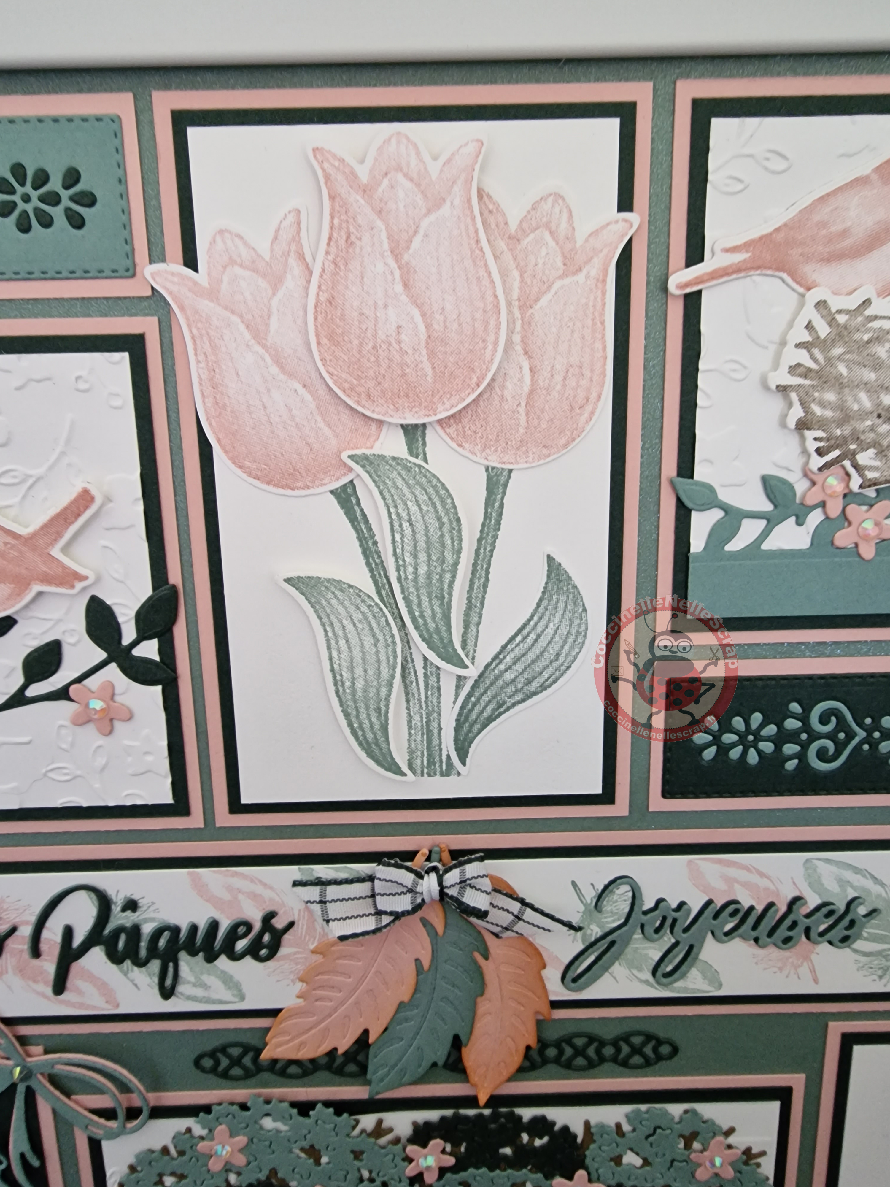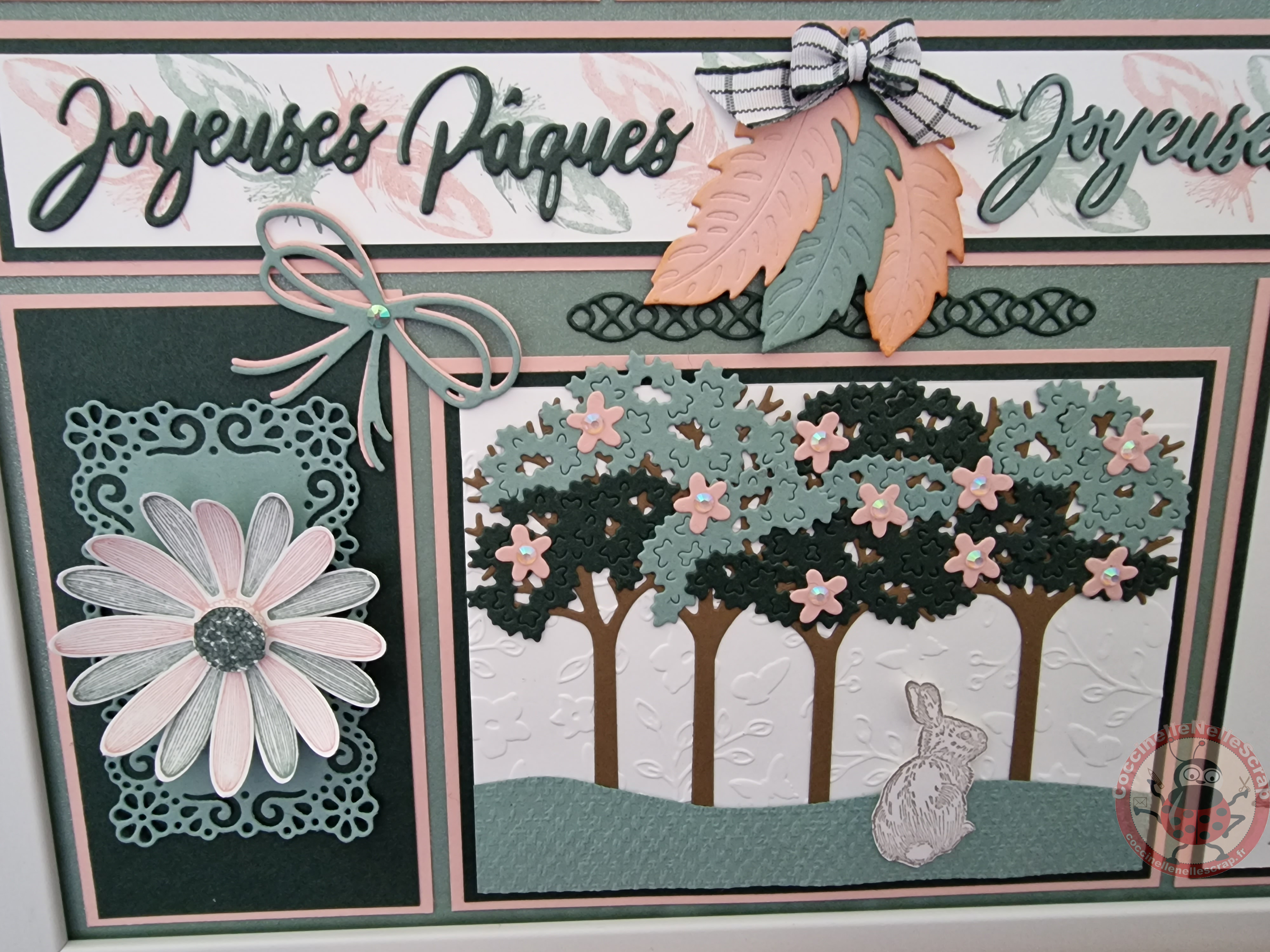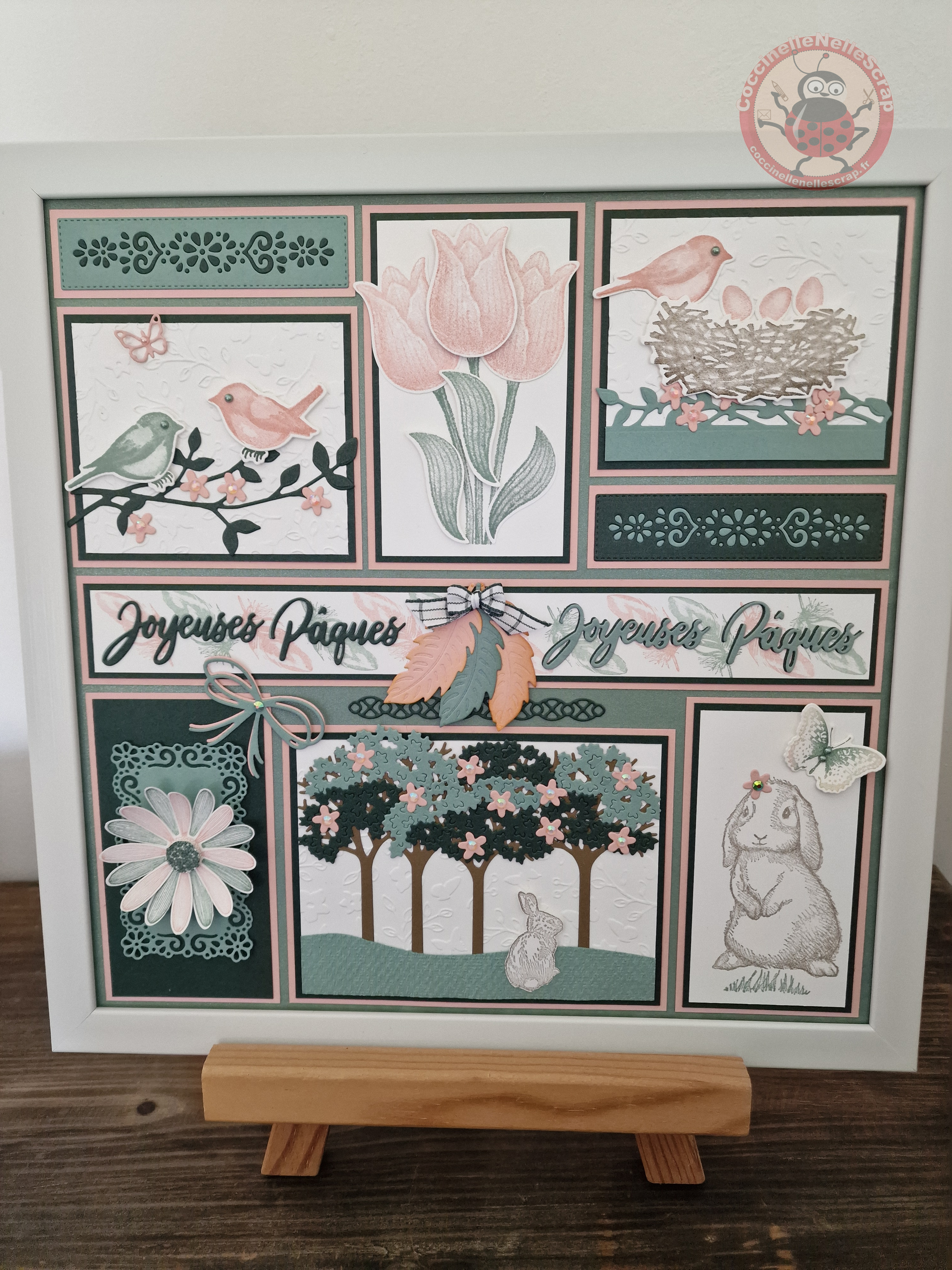 Question du concours : Citez moi 8 articles remisés que j’ai utilisés pour réaliser le tableau décoratif de Pâques. ça peut être soit des sets de tampons, soit des sets de poinçons, soit des plioirs de gaufrage, soit des perforatrices, voir des joyaux…