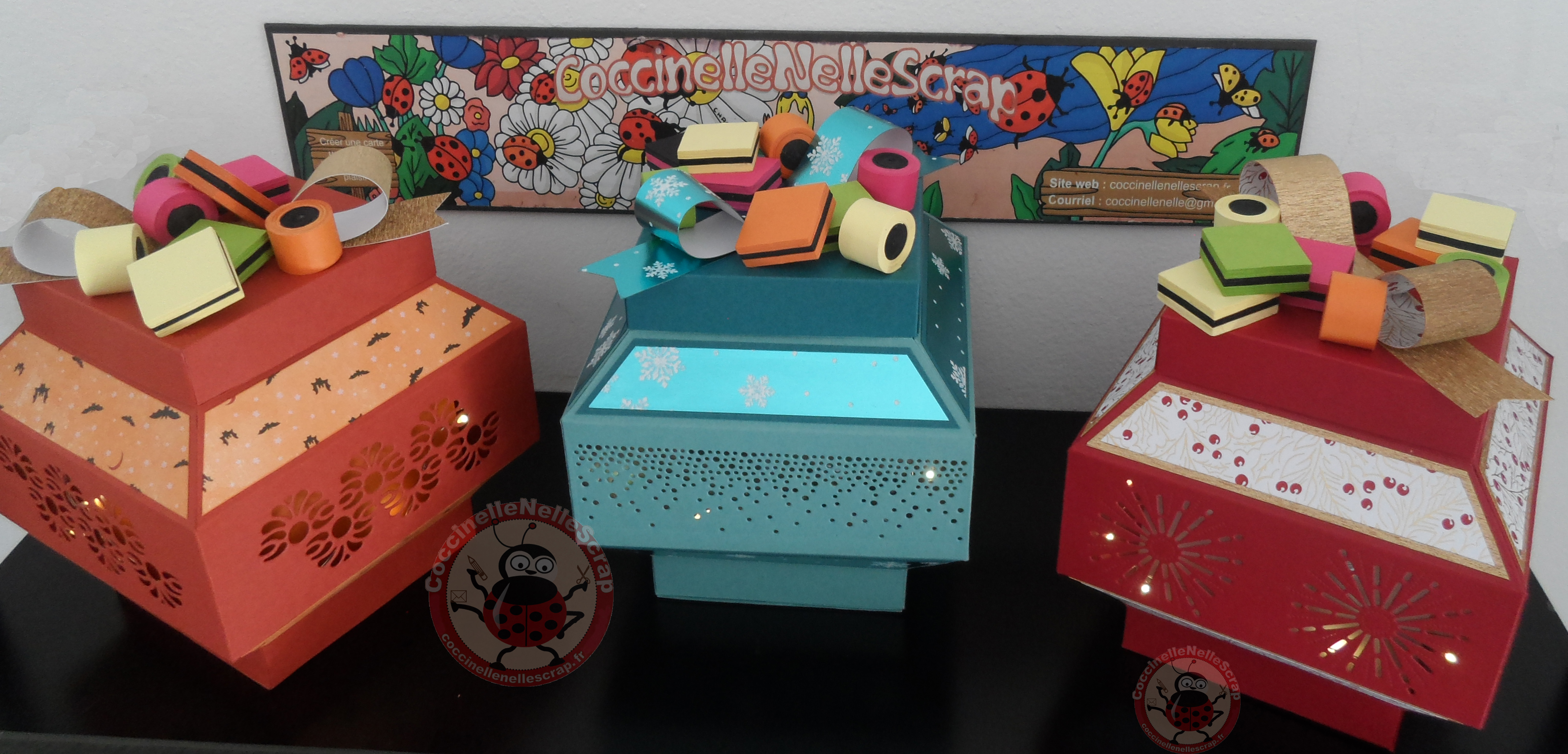 Par ailleurs, je serai très heureuse d’offrir à toutes celles et tous ceux qui me passeront une commande durant le mois de novembre, le tutoriel en PDF des bonbonnières-photophores avec leurs bonbons en trompe l’oeil.