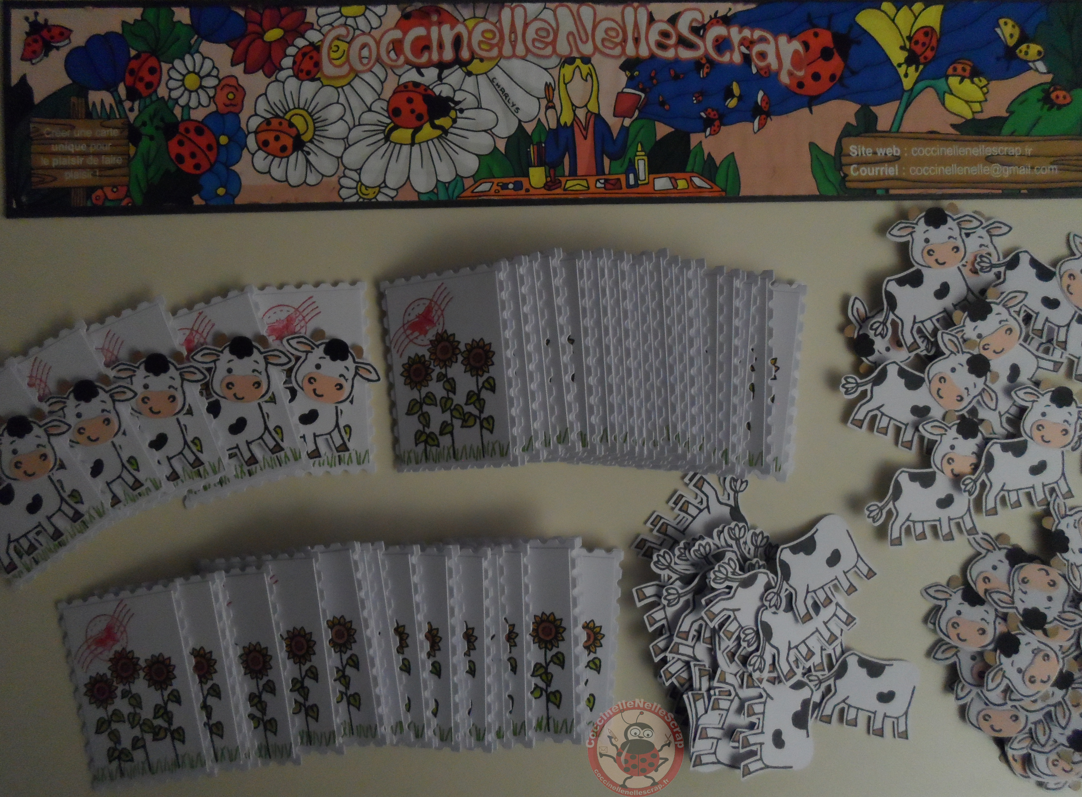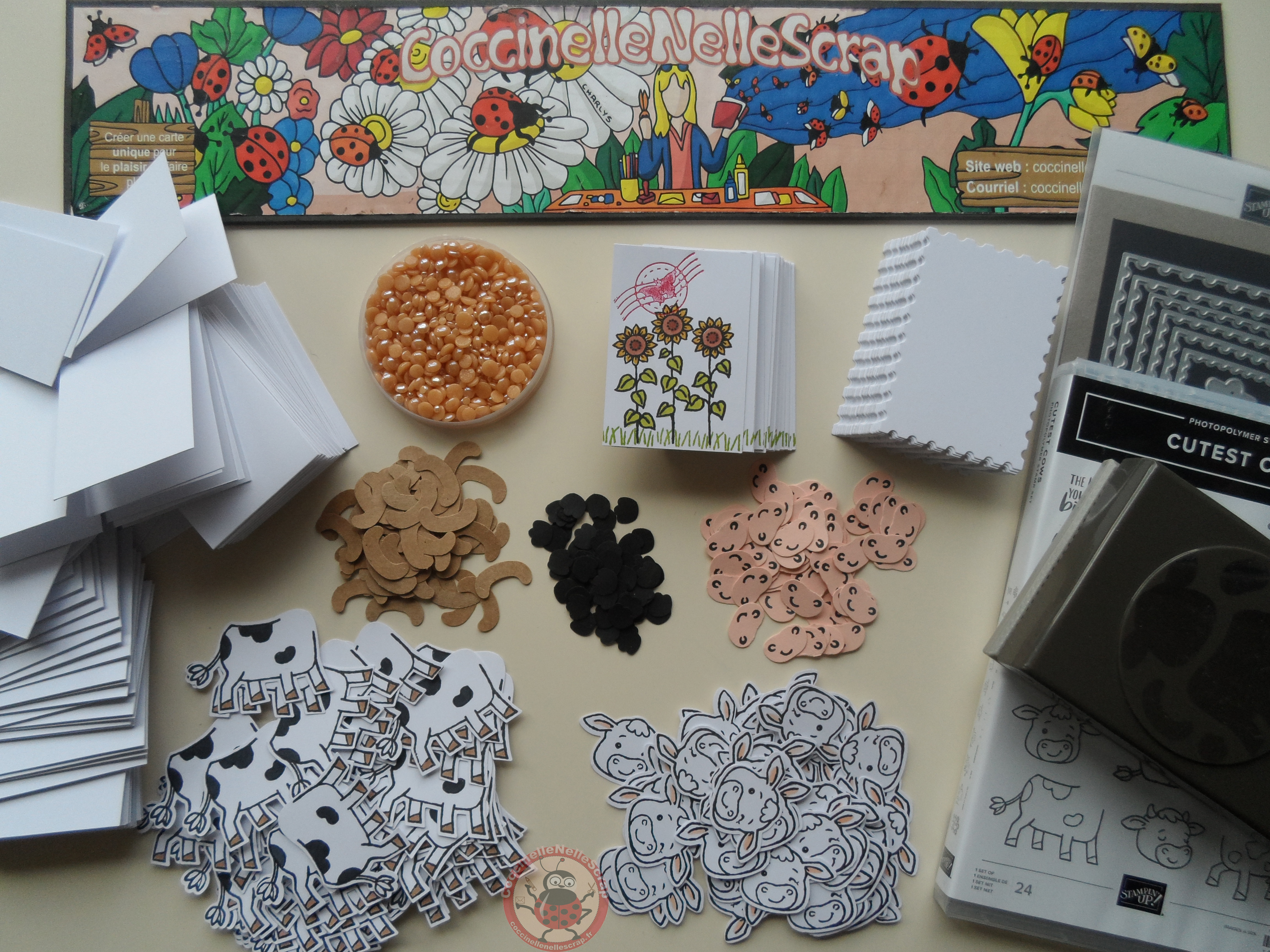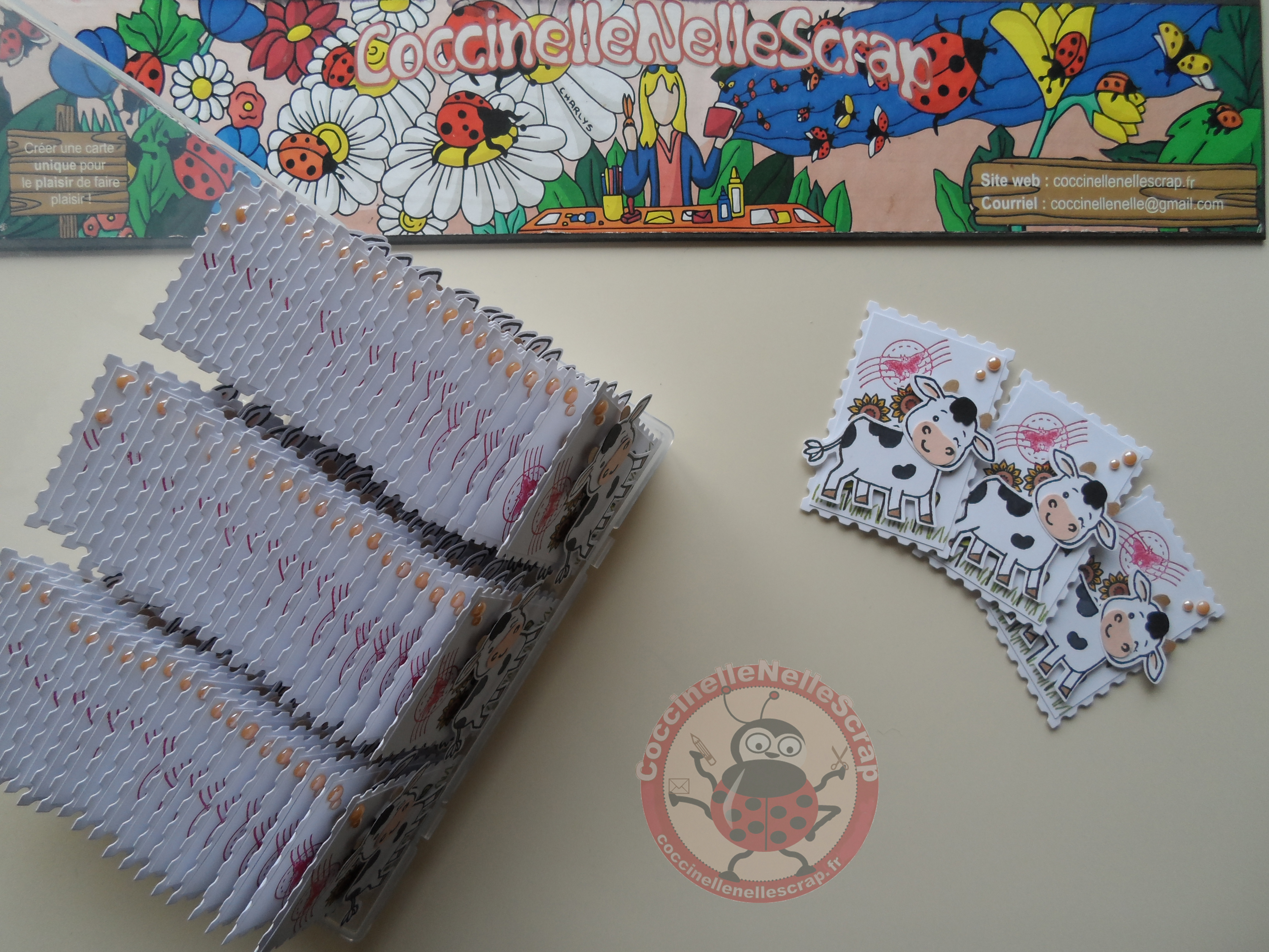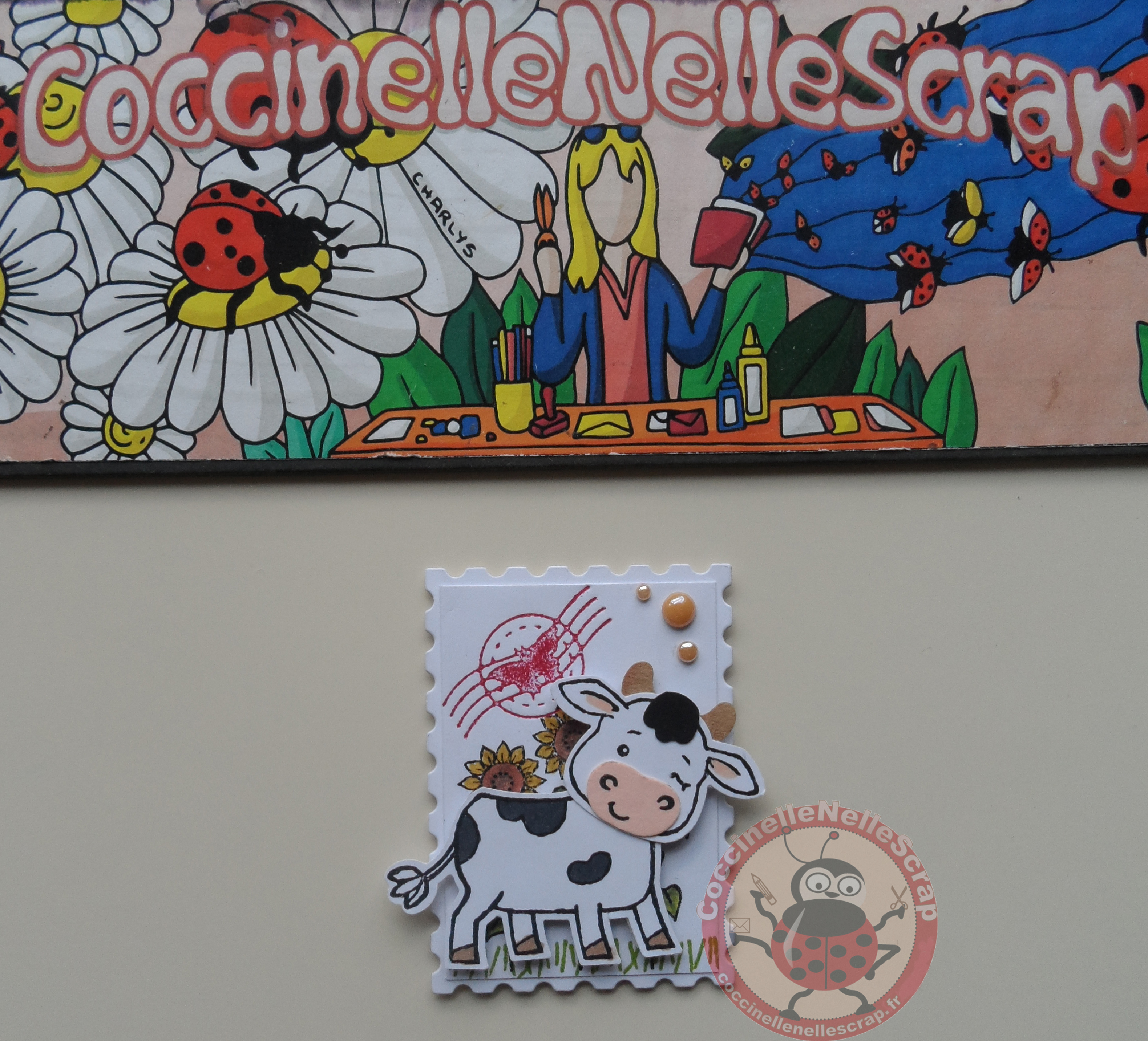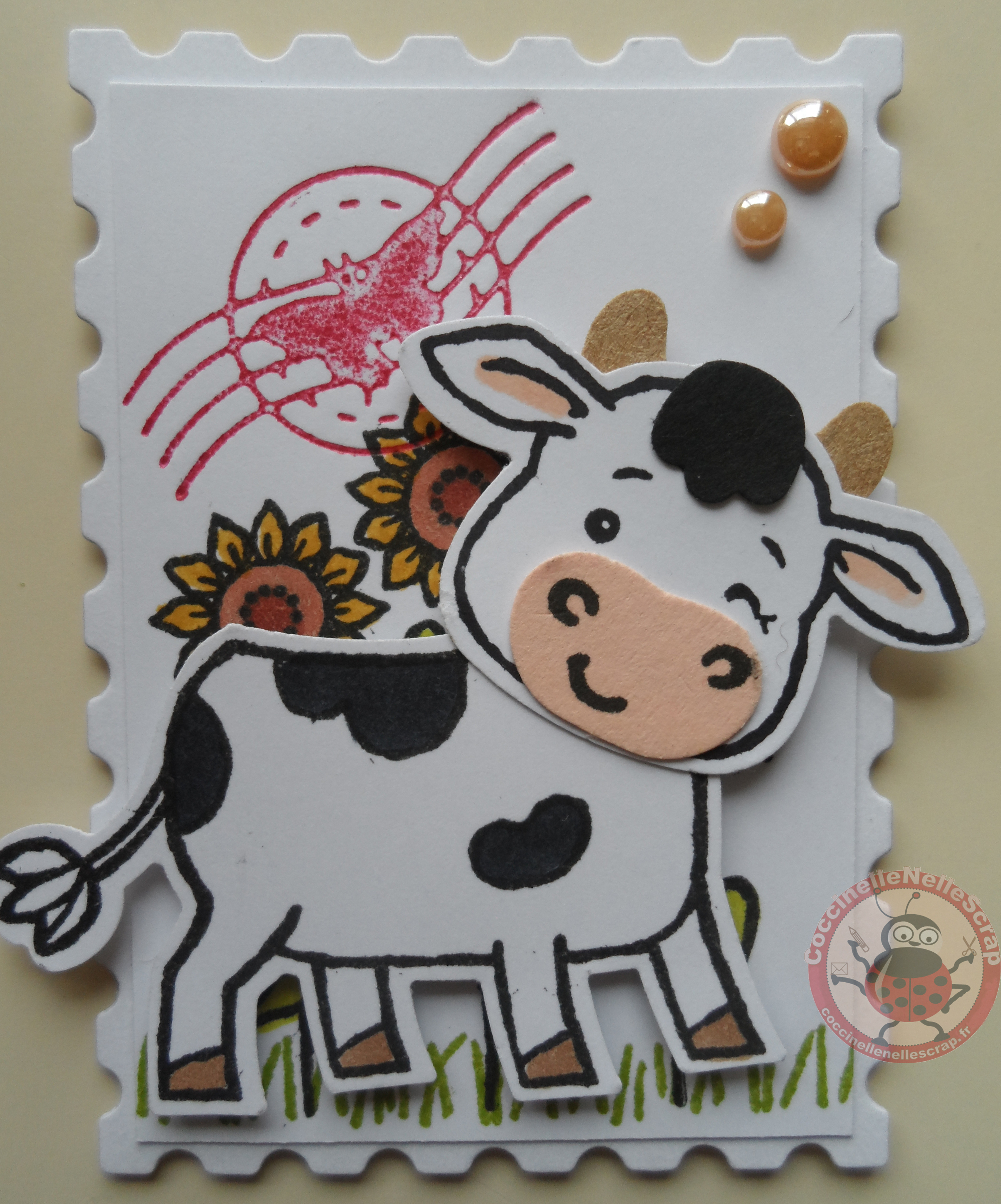Cette mignonne petite vache est mon coup de coeur que j’ai plaisir à partager avec vous sous forme d’un gros timbre. J’adore également ces poinçons « Timbres intemporels ».