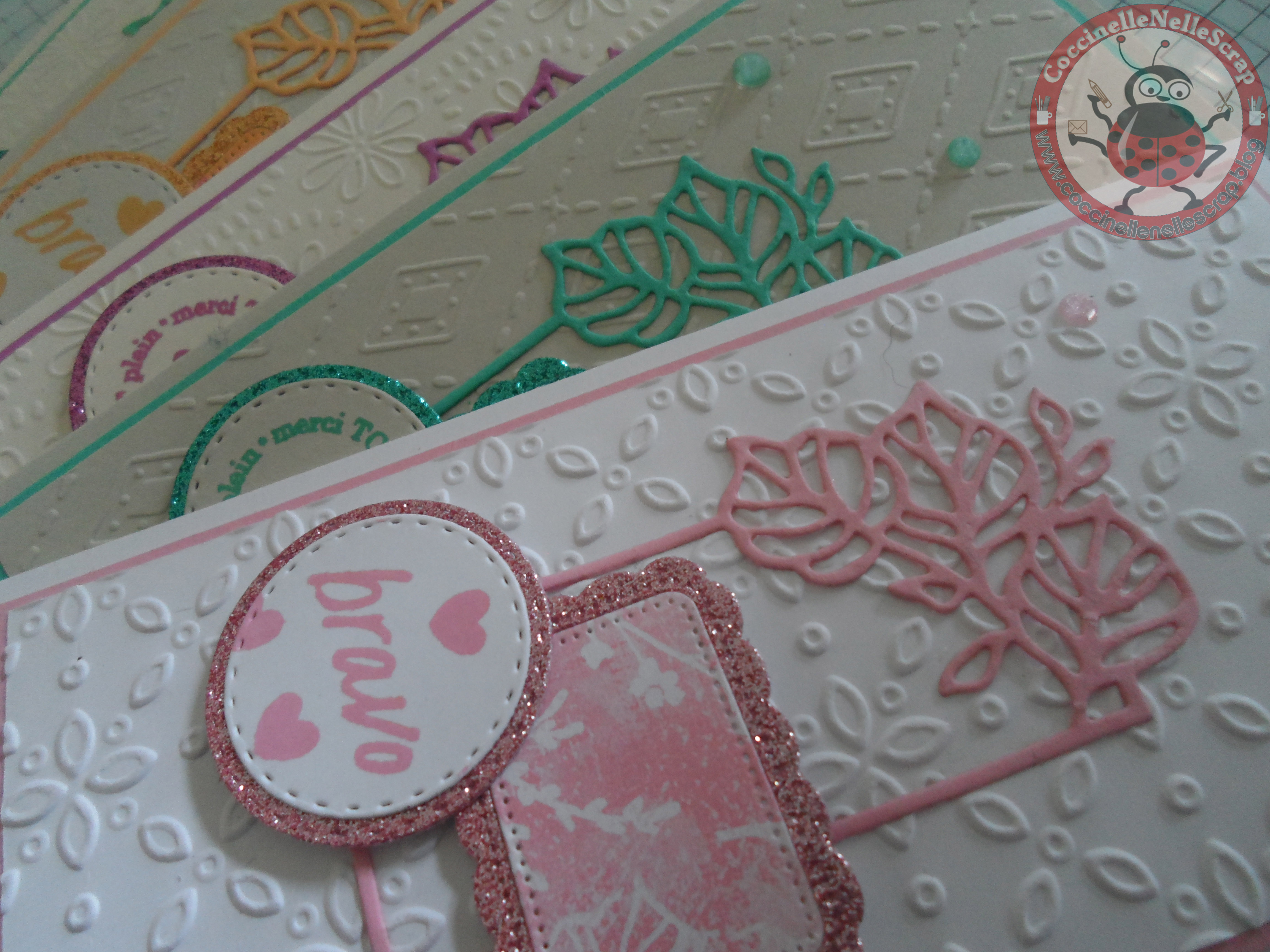 - un rectangle de papier cartonné de la couleur de la base de 14,2 x 6,6 cm à embosser ;