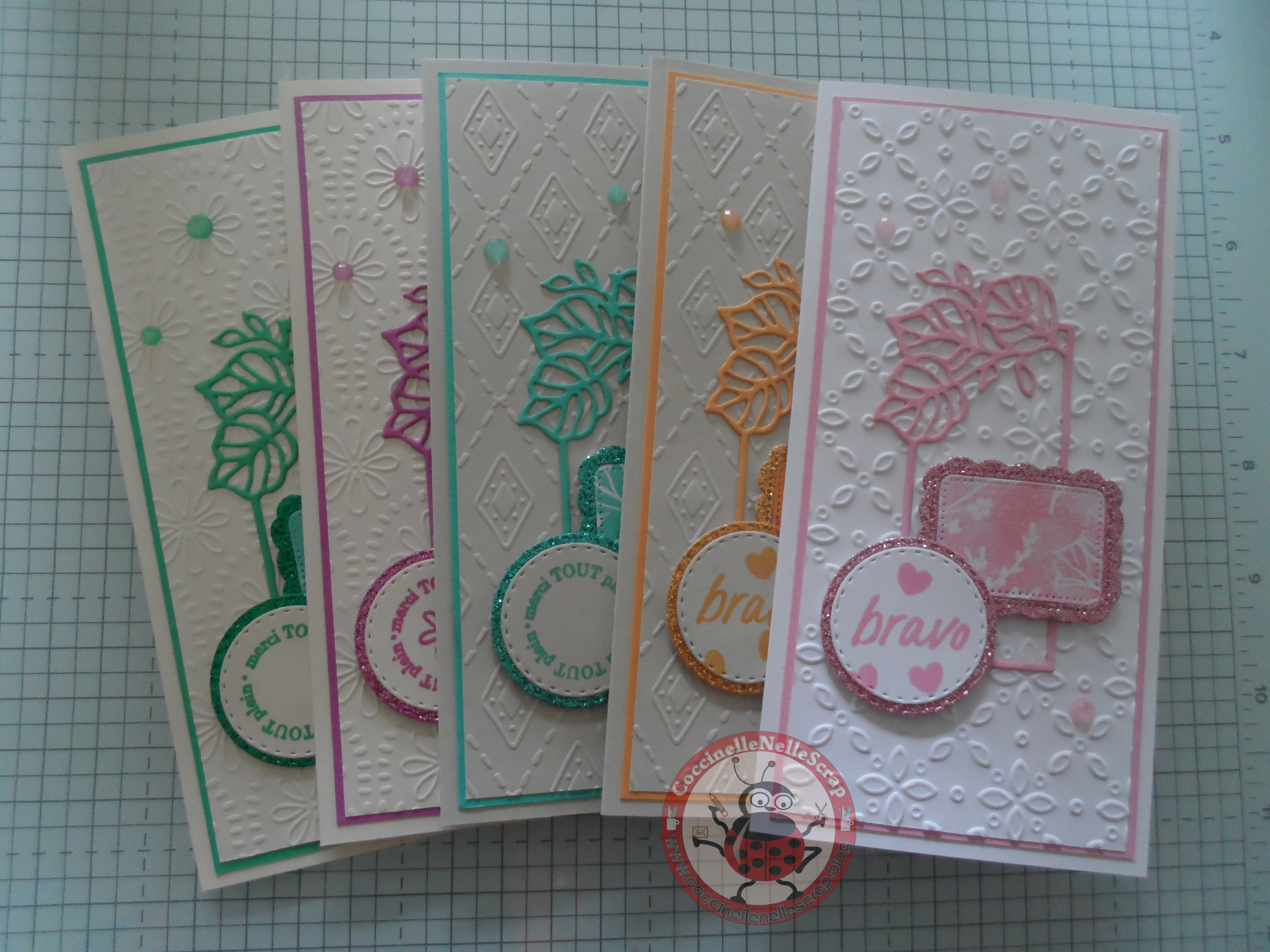 C’est une carte que j’ai envoyée à mon équipe pour accompagner le marque-page aimanté Nichoir campagnard que je souhaitais leur offrir. J’ai également souhaité des anniversaires à des copines scrapeuses et adressé mon petit cadeau à une de mes filleules suite au challenge du mois dernier, lancé comme chaque mois à l’équipe.