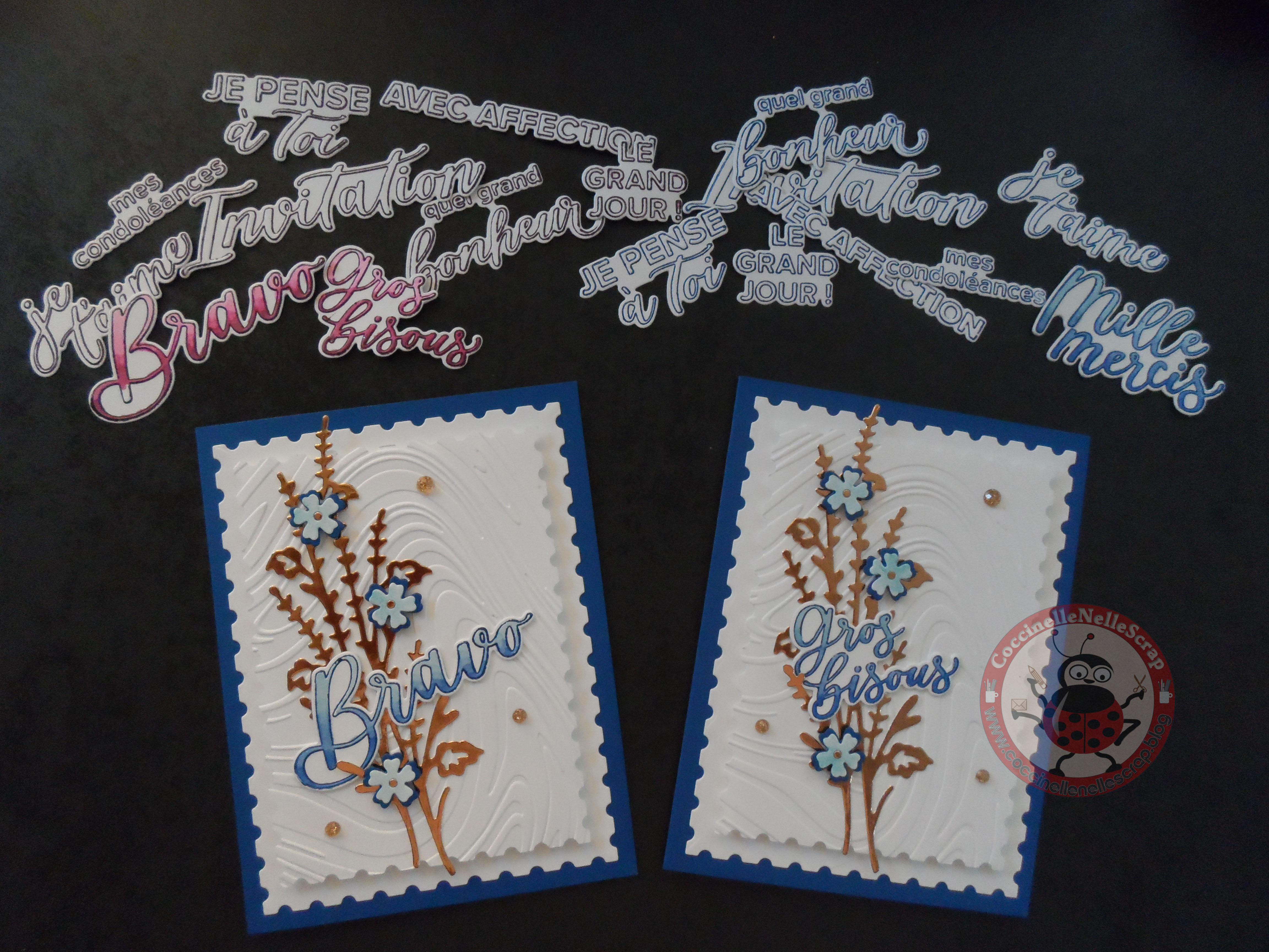 - des chutes de papier spécialité métal texturé cuivre, de papier cartonné Blanc Simple, de papier cartonné de la couleur de la base de carte.