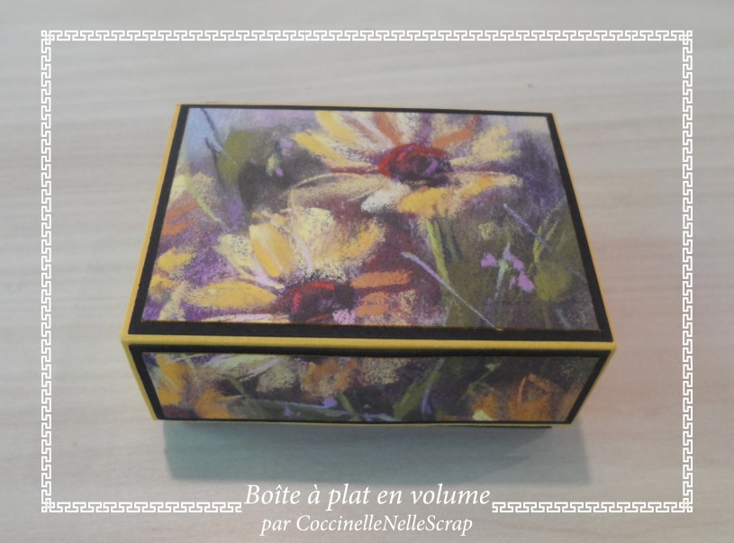 Lors de notre rencontre créative du lundi 16 septembre à 14 heures, je vous propose de réaliser ensemble une boîte à plat.
