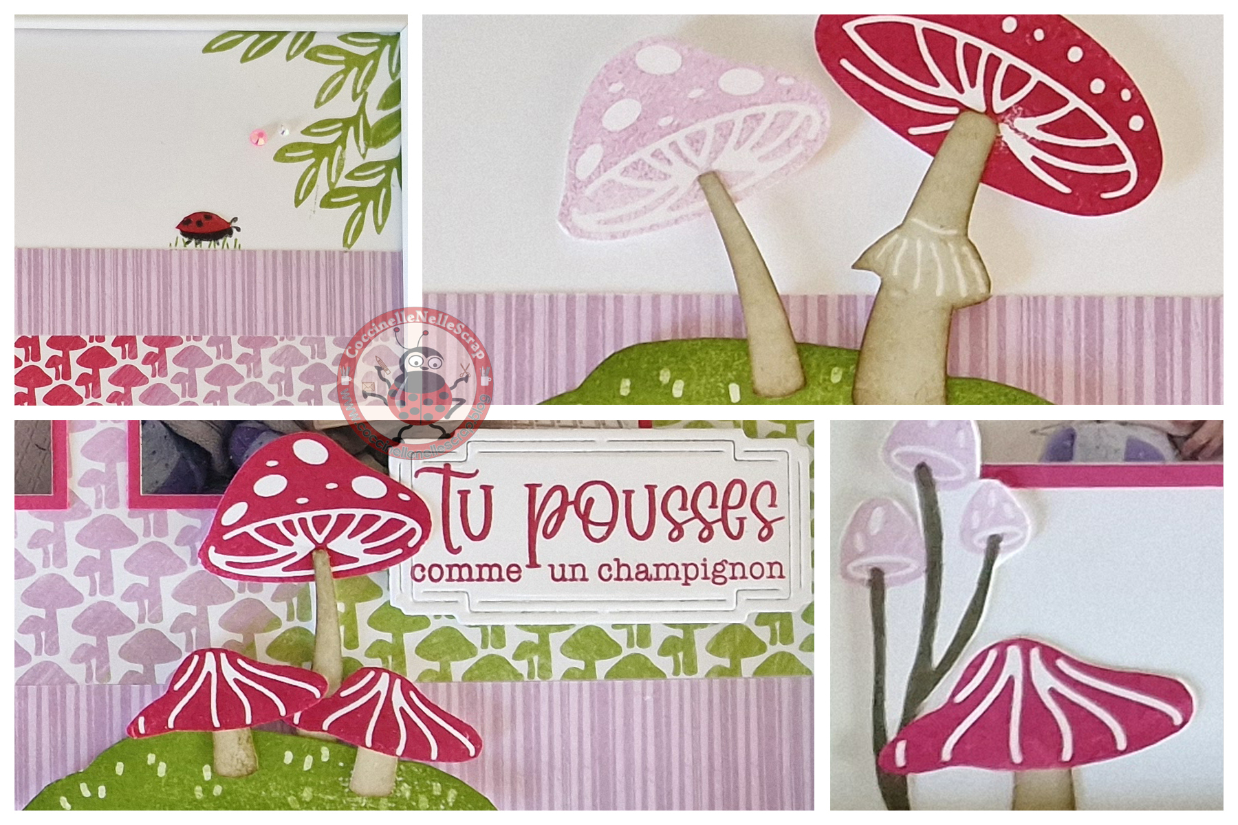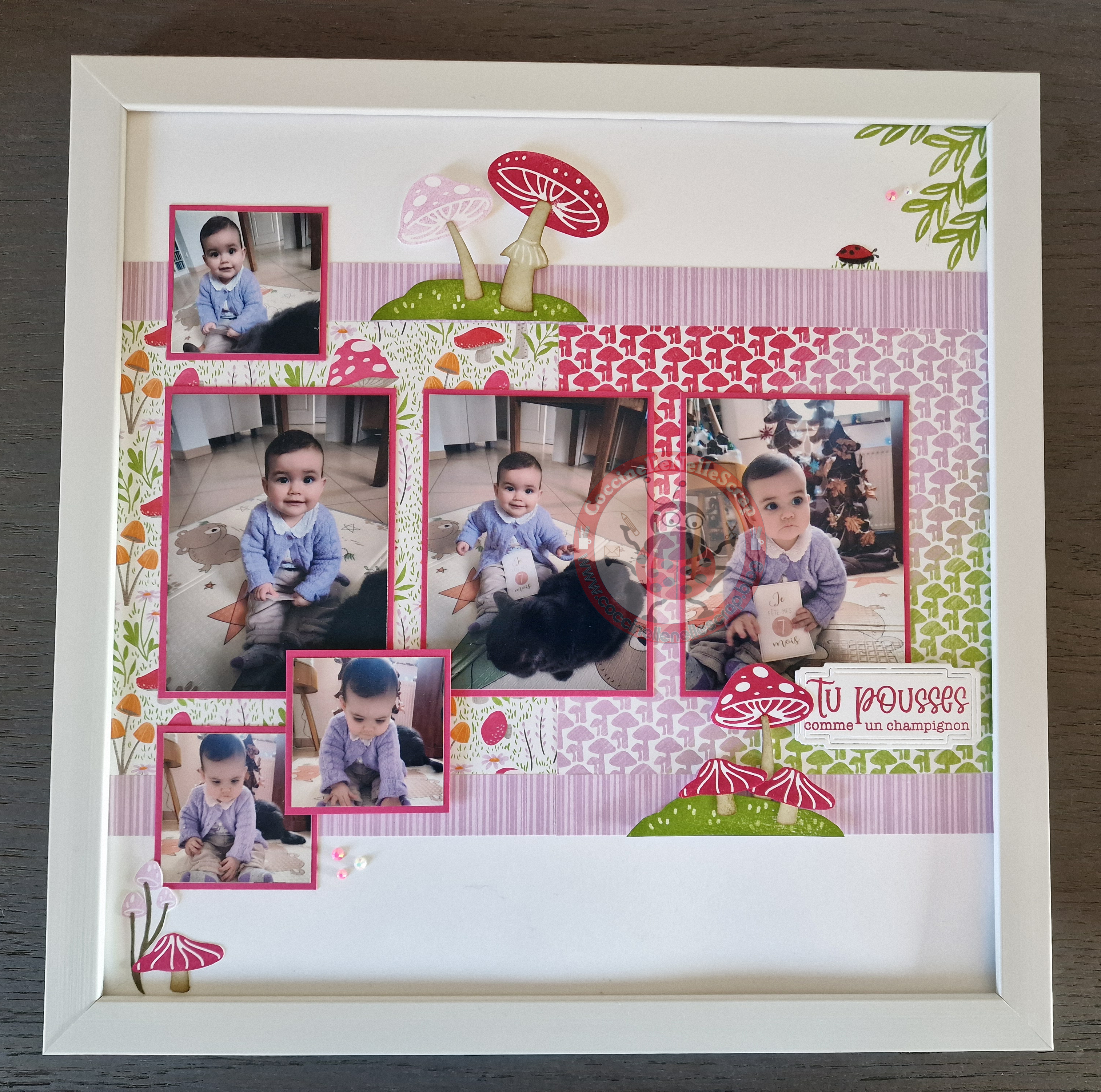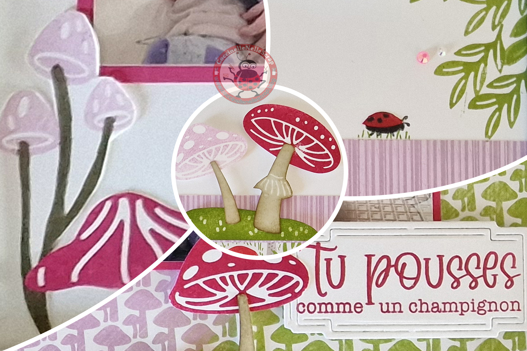 Voici une page de scrap que j’ai créée à l’aide du lot Aventure enchantée tiré du mini-catalogue Janvier-Avril 2025, en plus du papier gratuit de la série design Jardins de champignons tiré de la brochure Sale-A-Bration 2025.